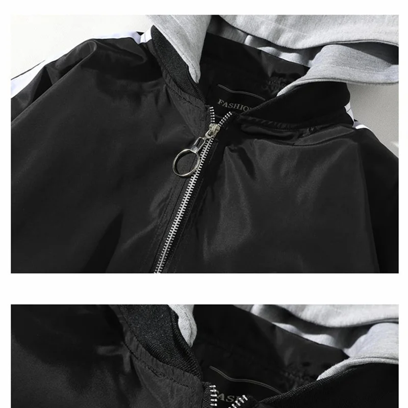 Куртка мужская однотонная на молнии с капюшоном в стиле хип-хоп