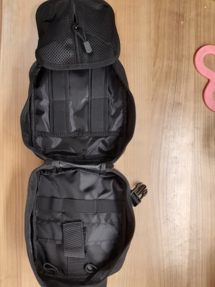 Ottimo prodotto. Ne ho acquistati diversi di diverso colore da tenere in auto, nello zaino che utilizzo per le escursioni, e nelli zaino che utilizzo quando esco con mia figlia piccola. Staccando il velcro della parte posteriore, è possibile ancorare la pochette alla moquette del bagagliaio dell'auto.