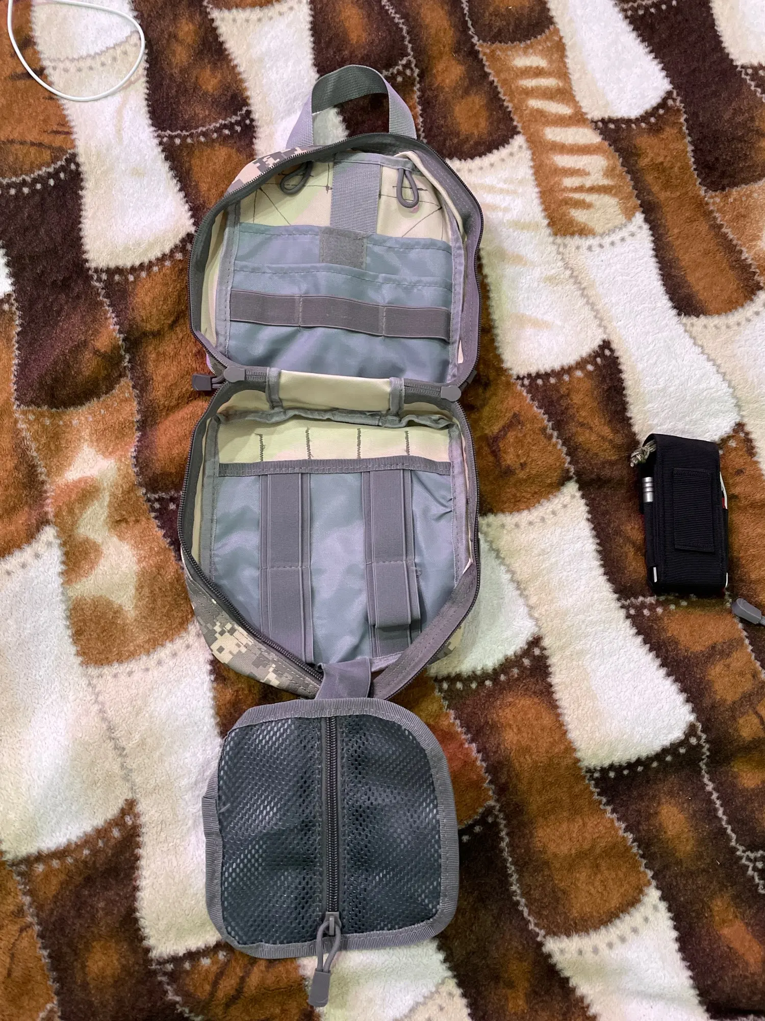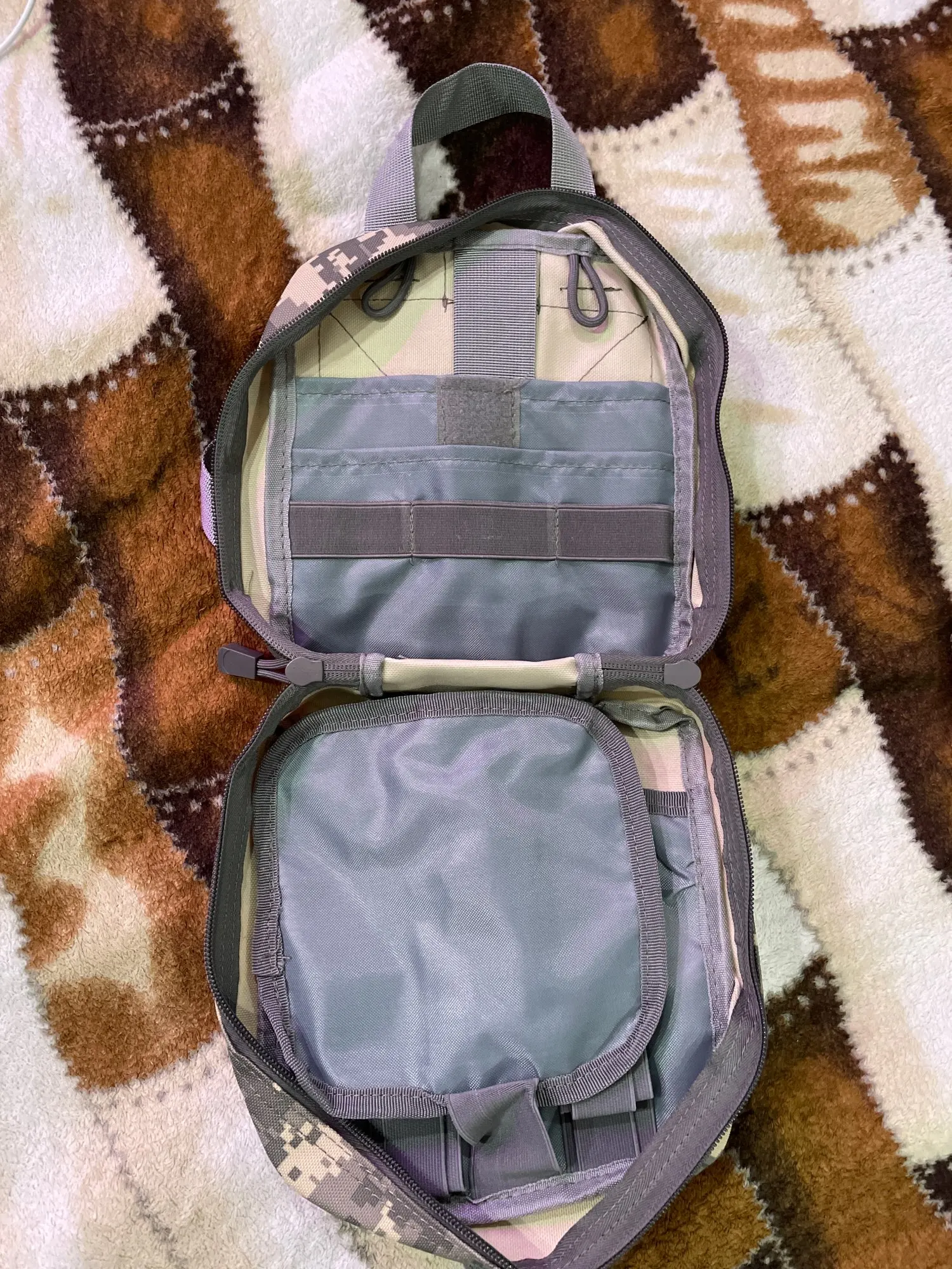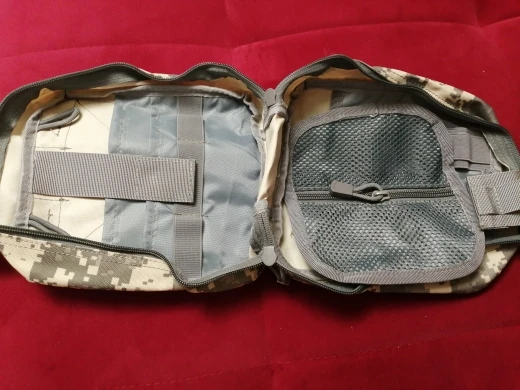 Прекрасная сумка для полевой аптечки. Новая не пахнет "плассмасовым китаем". Сшита довольно хорошо, держится все крепления отлично. Внутри продуманная система закрепления медицинских приспособлений. Покупал её чтобы собрать нормальную аптечку в машину. Качество на высоте. рекомендую!