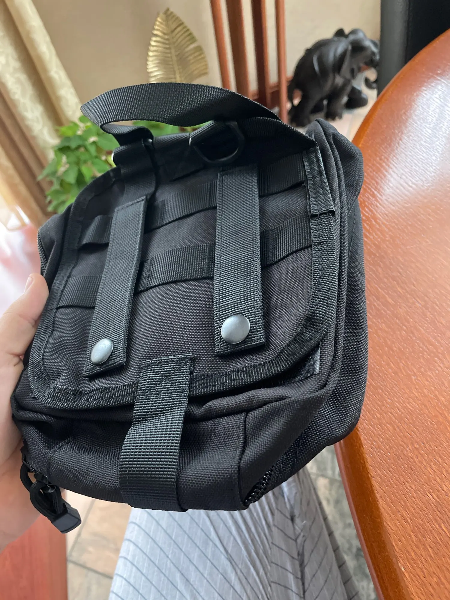 Потрясающе, довольно большой и может быть отделен от удерживаемых полос липучкой. Таким образом, вы фиксируете его на рюкзаке, но можете сорвать сумку в экстренной ситуации. Гений