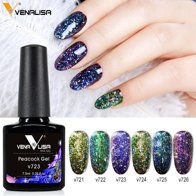 Гель-лак VENALISA с павлином, Звездный Блестящий лак-хамелеон с блестками, долговечный отмачиваемый УФ светодиодный художественный Гель-лак для ногтей