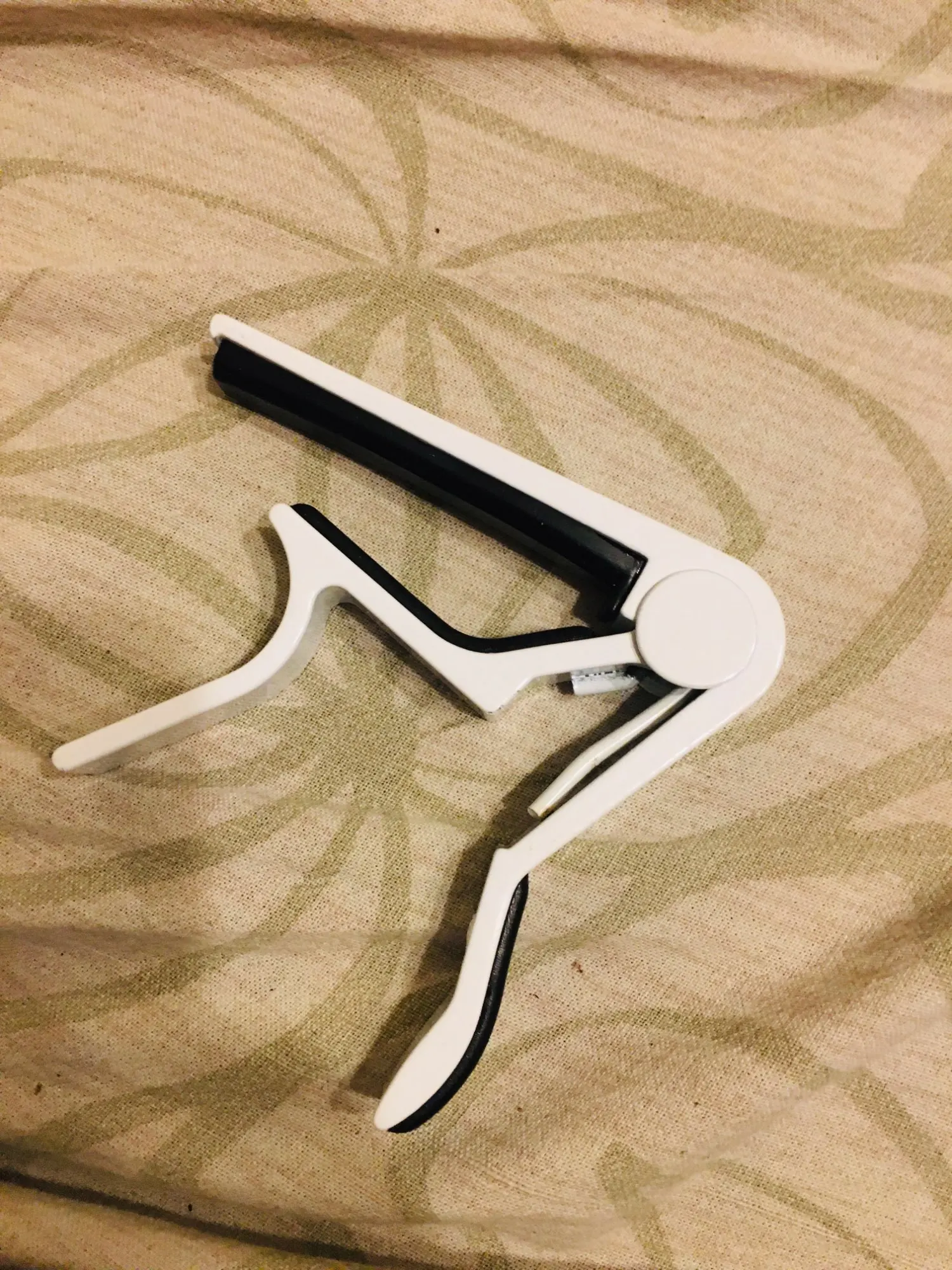 Отличный каподастр - самое то: пружина жесткая, идеально поджимает струны, не тяжелый, но и не пластмасса, да и внешне- красава. Короче, то что нужно. Продавцу спасибо.