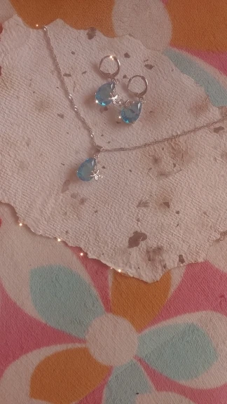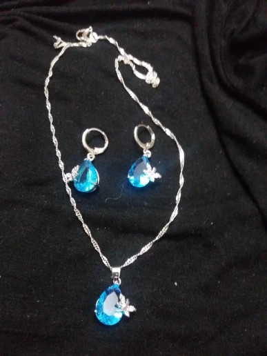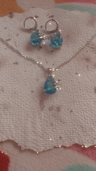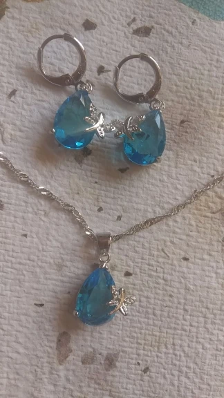 Muy lindo conjunto. No puedo decir que son de plata ya que no soy experto, pero a mi esposa le gustó, aunque al día siguiente de puestos los pendientes, le lastimaron un poco y tuvo que quitárselos. Rápido envío y llegó antes del tiempo estimado a mi país.