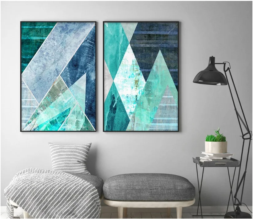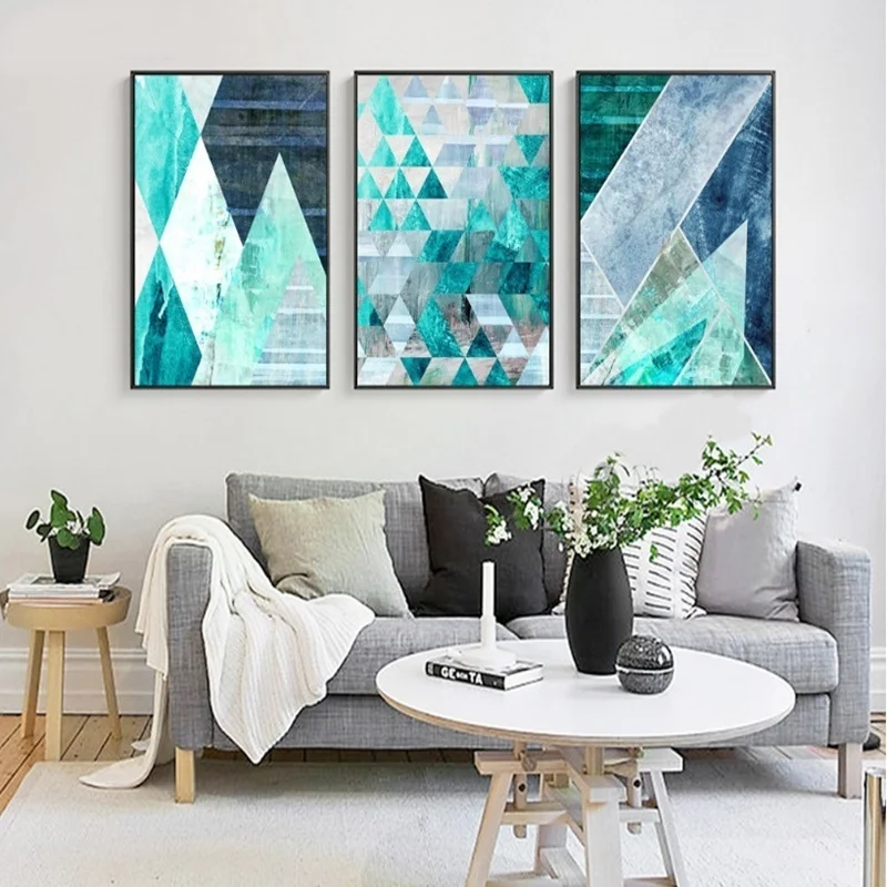 Геометрические бирюзовые холщовые постеры Абстрактное Искусство Холст принты картина в скандинавском стиле настенные картины для гостиной домашний Декор без рамки