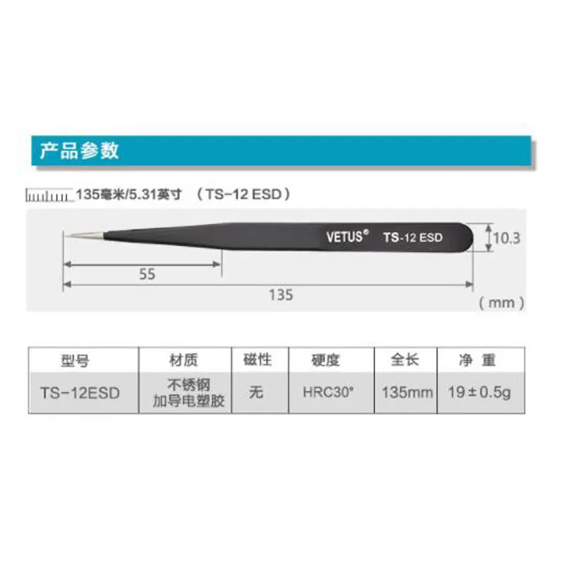 500 шт VETUS 100% бренд Антистатические ОУР Пинцет из нержавеющей с...