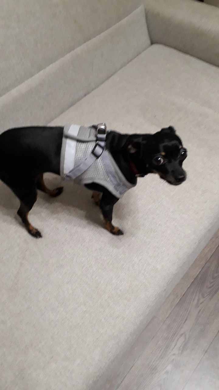 Товар пришёл очень быстро. На цвергшнауцера 6.5 кг весом идеально L.