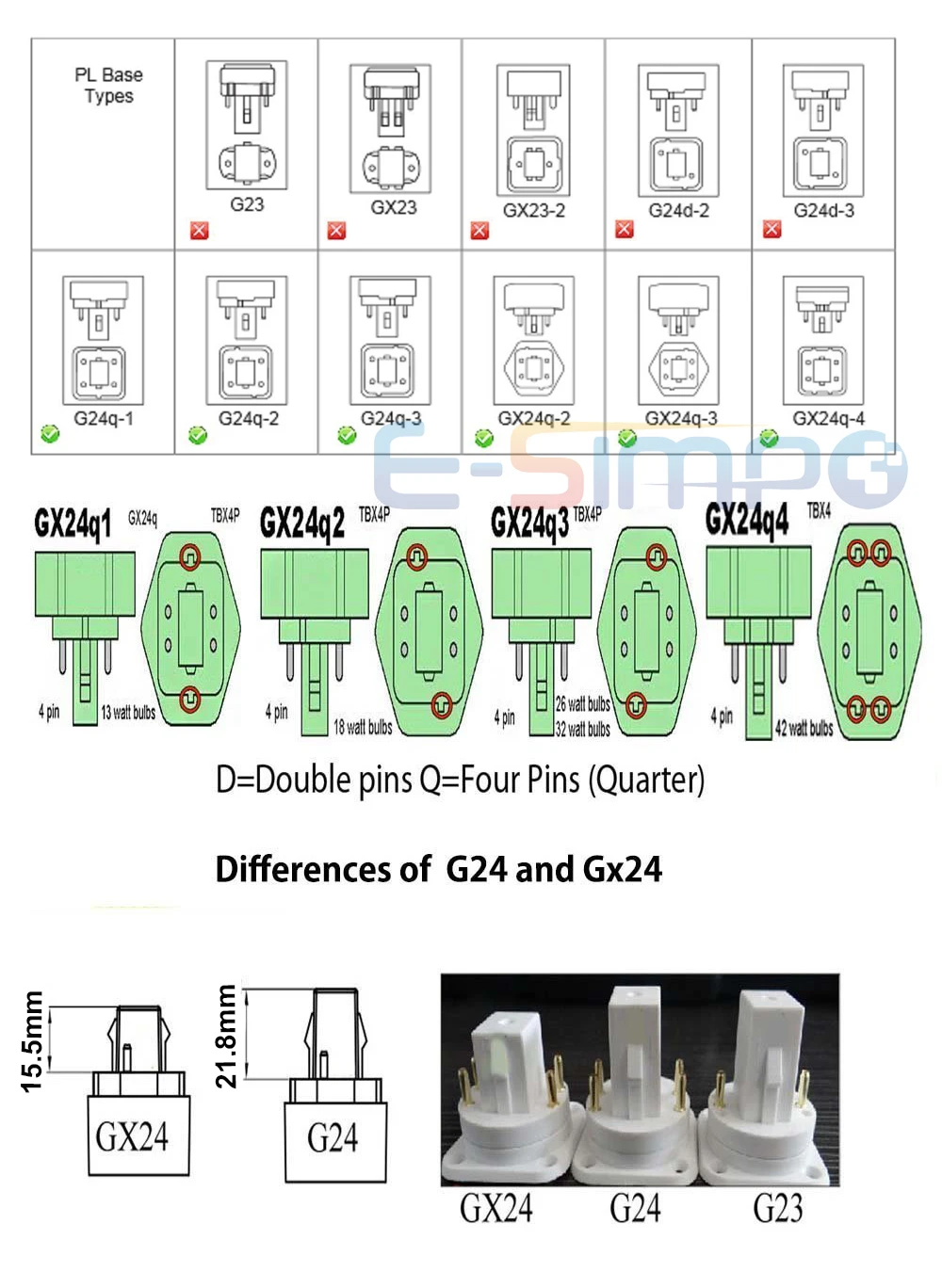 4-контактный адаптер для цоколя лампы GX24Q в E27, адаптер для цоко...
