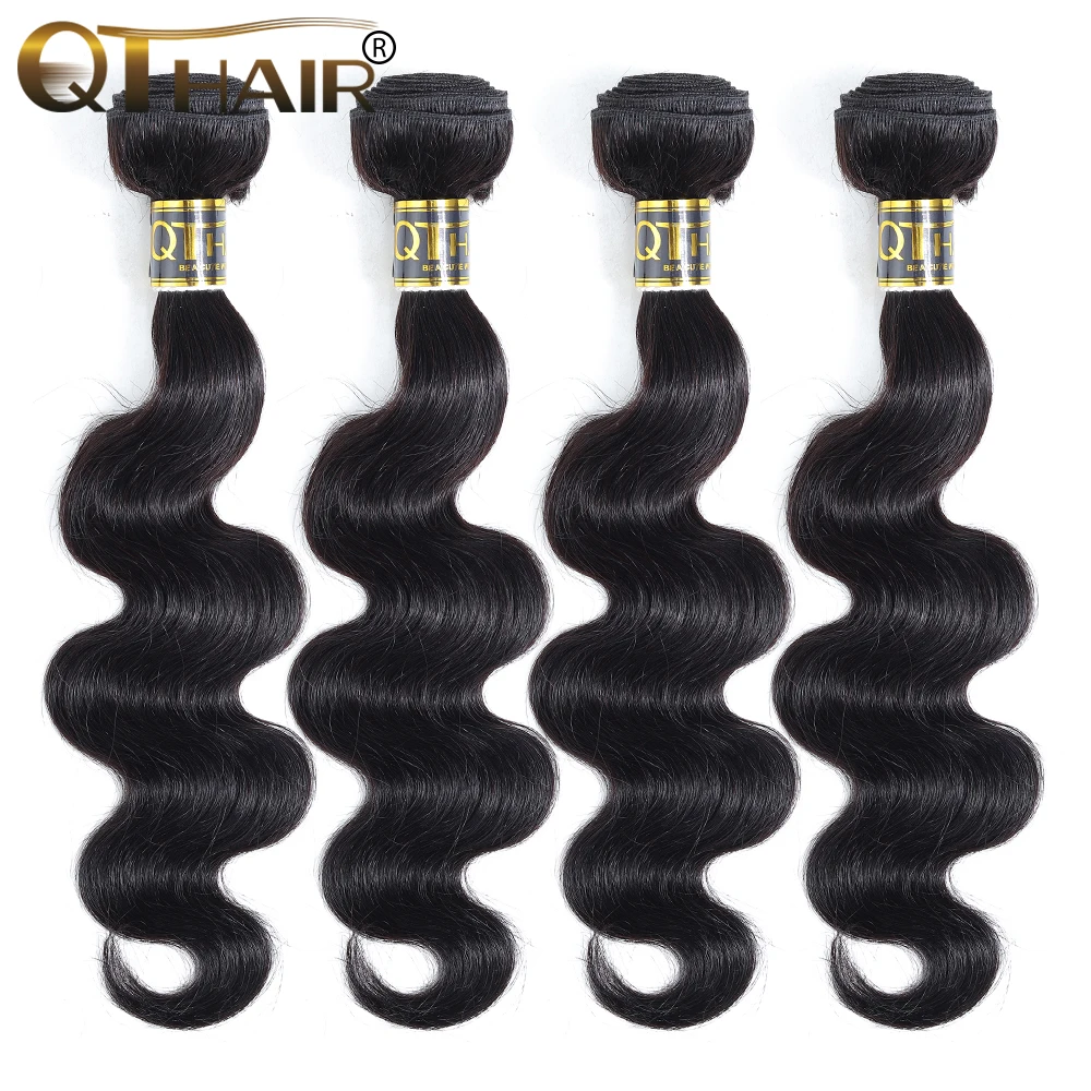 Волосы QT, бразильские волнистые волосы, волнистые пряди, натуральный цвет, 100% человеческие волосы, плетение, 3 шт., 10-28 дюймов, наращивание волос Remy