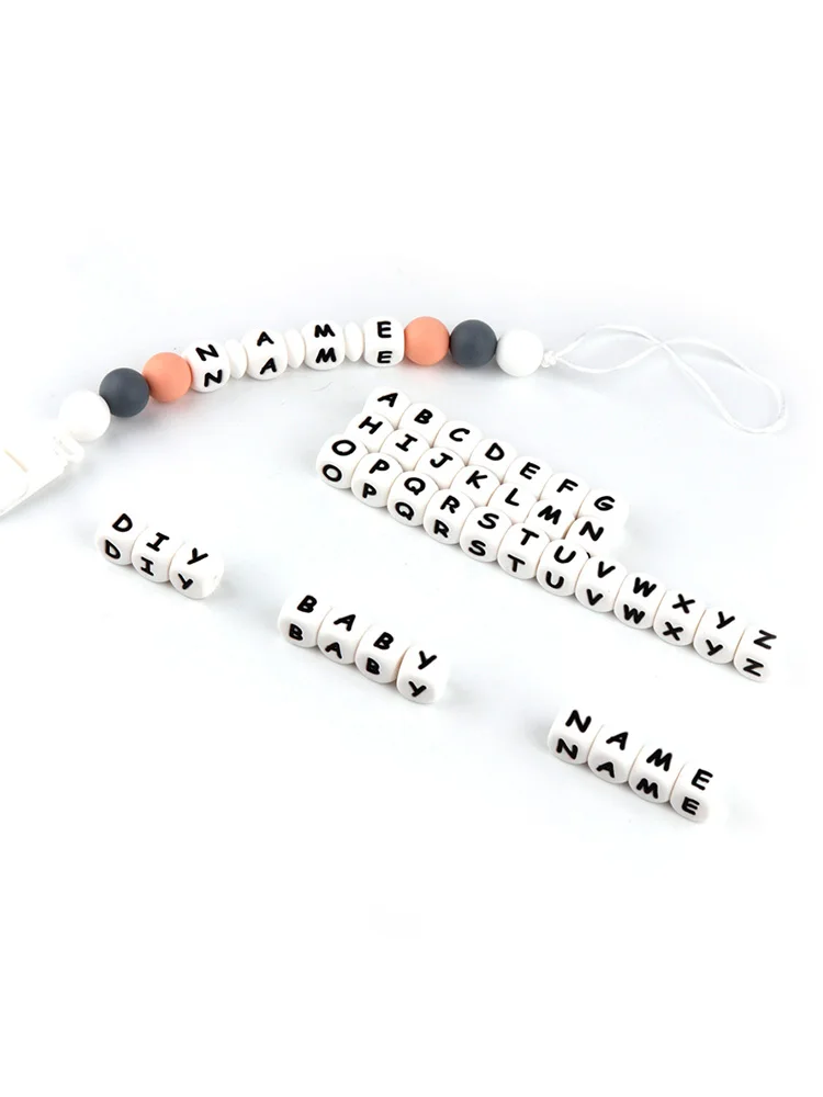 200 шт. селиконовые буквы Силиконовые Прорезывания Зубов Бусины буквы алфавита для персонализированные имя на соску клипы ребенка прорезыватель аксессуары 12 мм