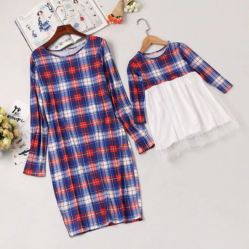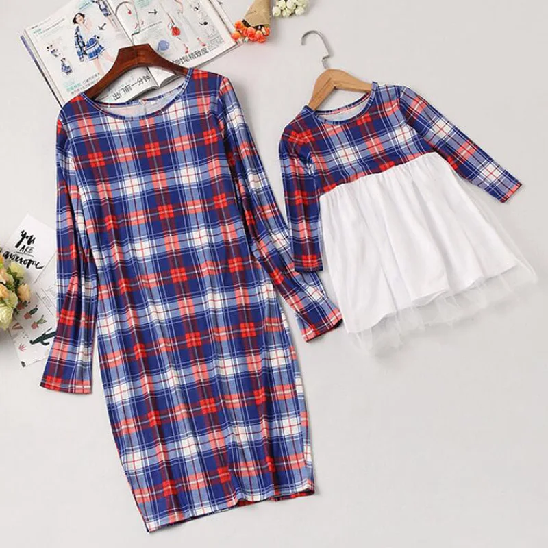 Семейная одежда, платья для мамы и дочки, весна-осень 2021, женская одежда для мам и девочек, клетчатое семейное платье с длинным рукавом