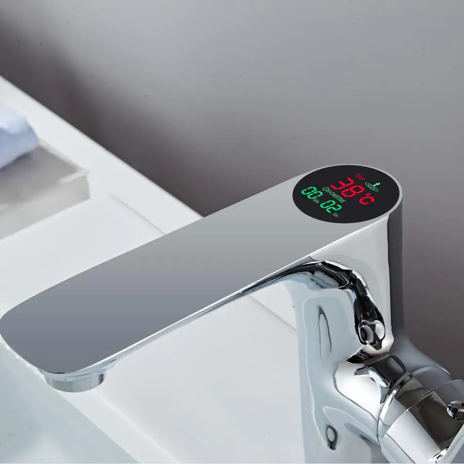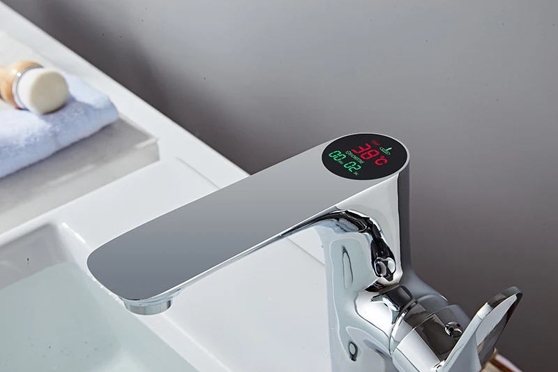 Цифровой смеситель для раковины BAKALA, латунный хромированный кран для ванной комнаты с ЖК-дисплеем, умный кран B-3035