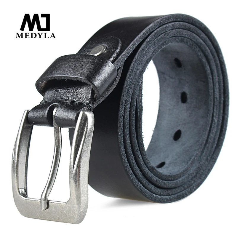 Мужской ремень с пряжкой MEDYLA, винтажный ремень из натуральной кожи, подходит для джинсов, доставка за 24 часа