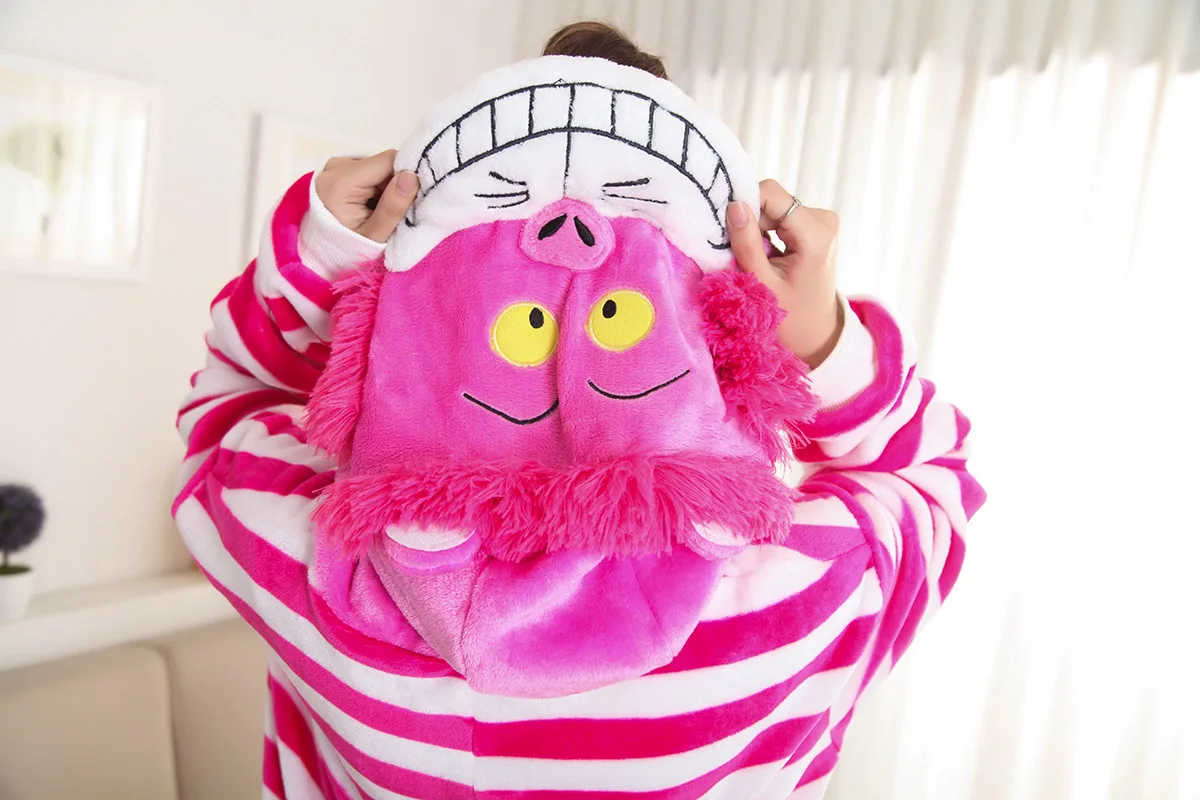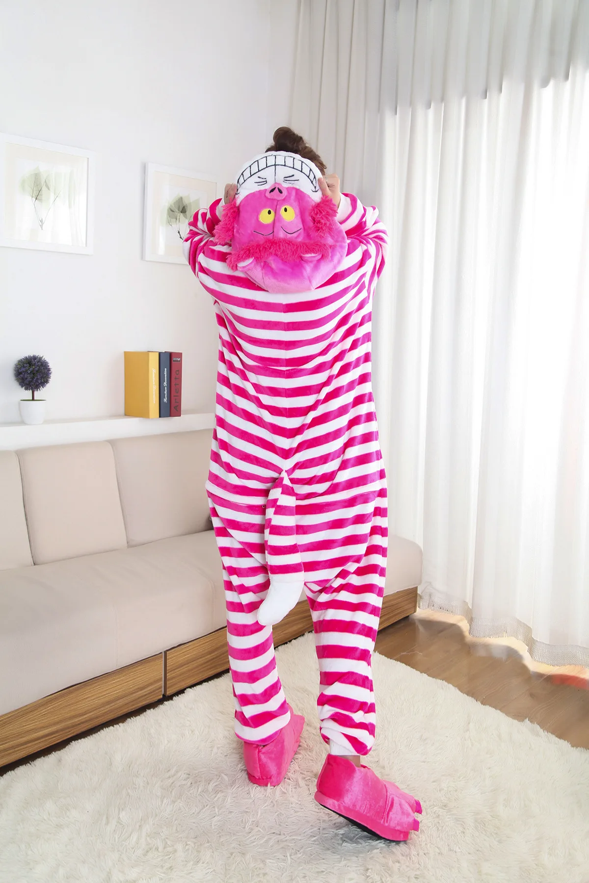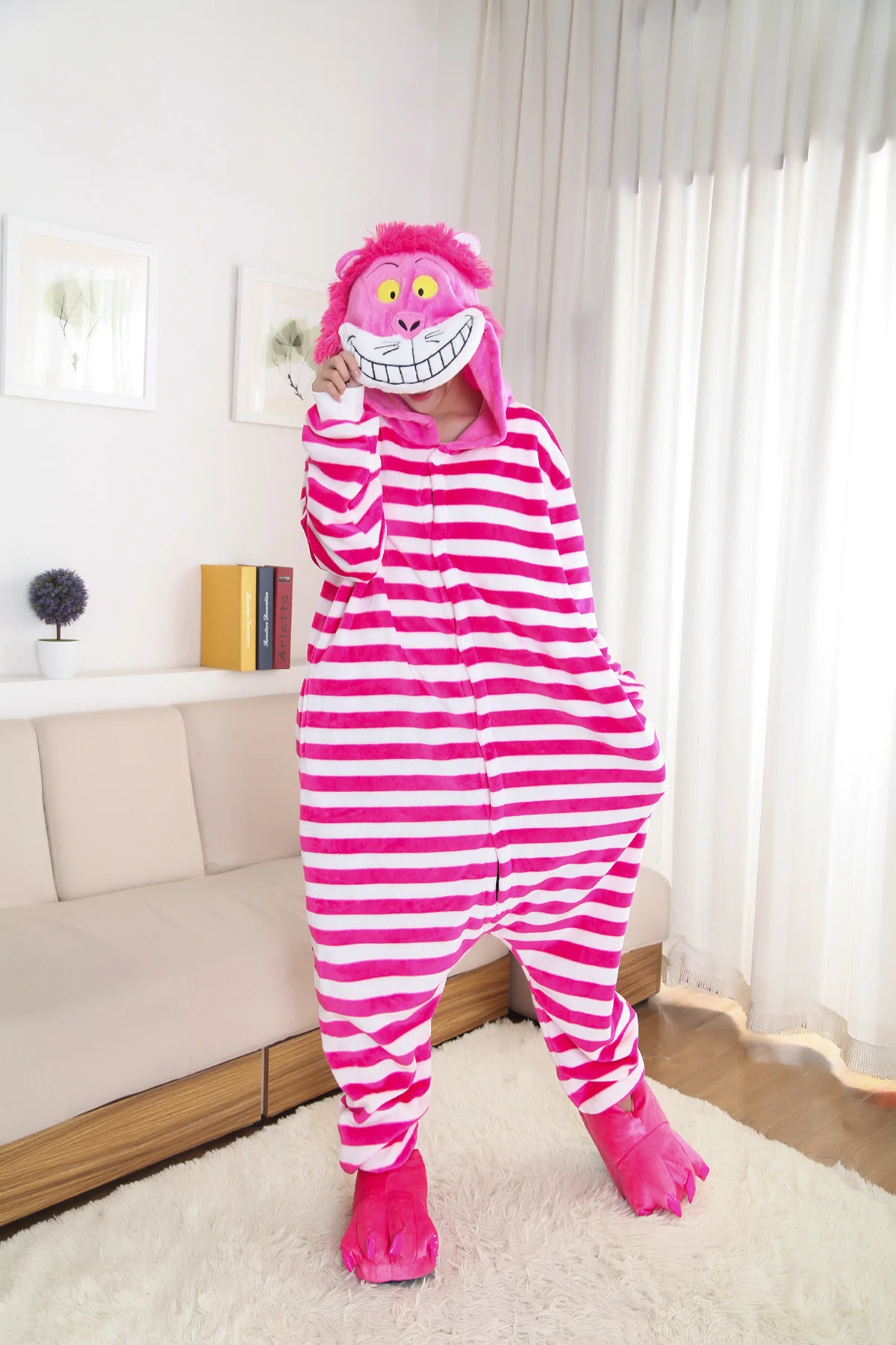 Из мультфильма Чеширского Кота или Kigurumis Onesie забавные розовый костюм в полоску для женщин и девочек, носки-тапочки для взрослых, одежда для сна пижамы с рисунками из мультфильмов животного Пижама с персонажем зимняя верхняя одежда