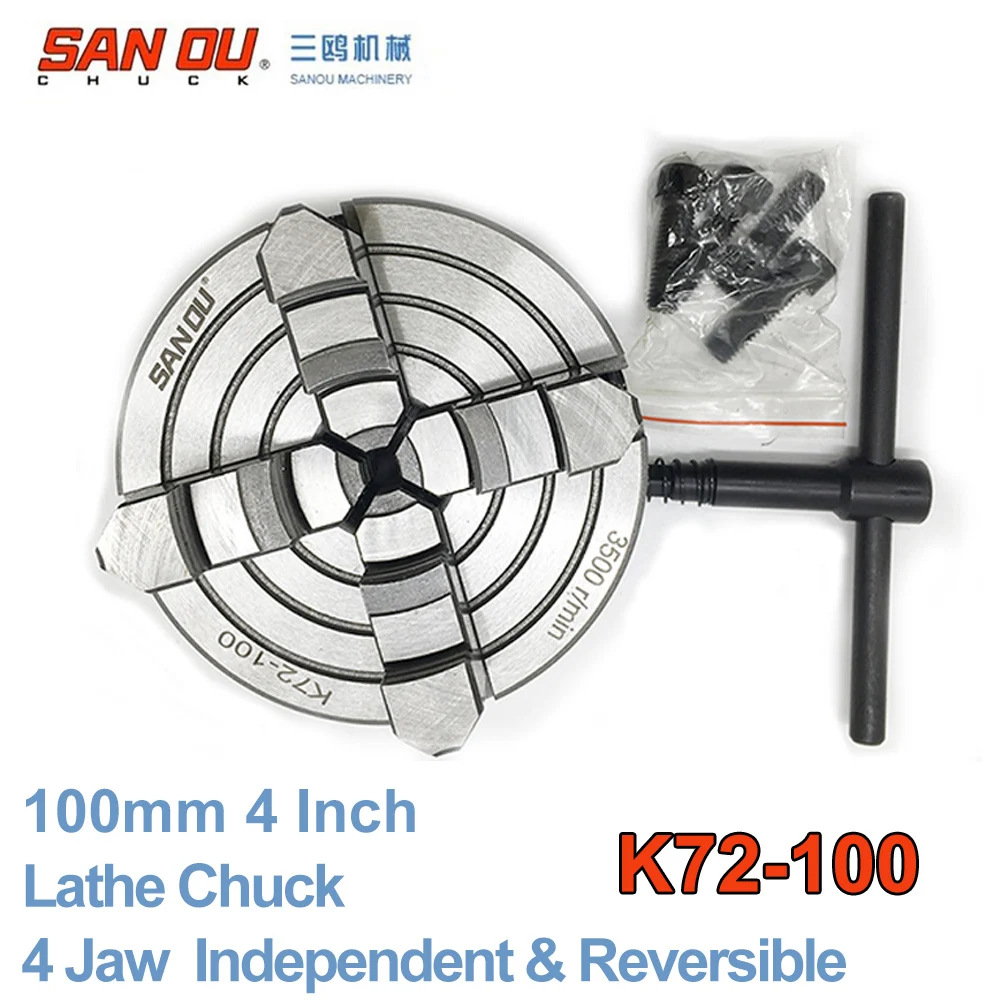 100 мм 4-кулачковый 4-дюймовый токарный патрон, независимый и Реверсивный кулачок SANOU K72-100 для сверления с ЧПУ фрезерная Деревообработка
