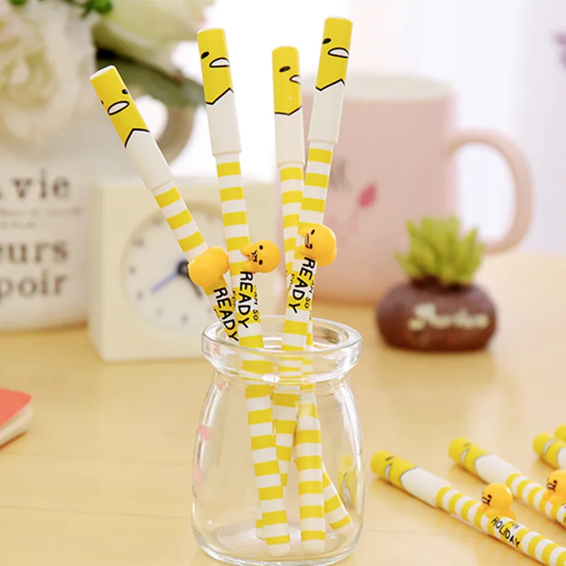 Гелевая ручка, корейские креативные канцелярские принадлежности, симпатичная Черная углеродная ручка для подписи в форме ленивого яйца короля