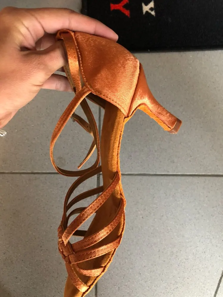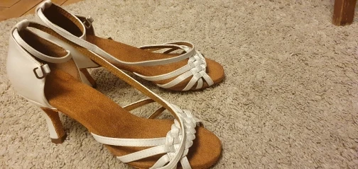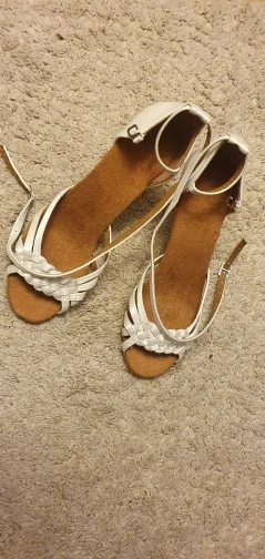 Обувь хорошего качества, рядом примерно. 2 недели в "конверте" без картона. Изображение обуви после месяца использования. Обувь удобная, имеет «мягкую» подошву и хорошо сделана. Ремешки длинные и имеют много отверстий. Большие и красивые цветные туфли. Единственный низ в том, что каблуки иногда «skrzypią», хотя я не уверен, что это так много беспокоится о танцах. Настоятельно рекомендуем за такую цену! (Рекомендуется брать на размер меньше, чтобы не было слишком свободно при носке;)