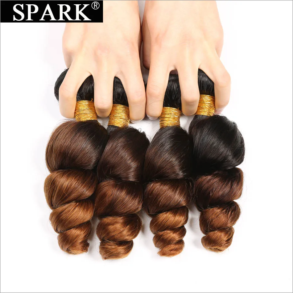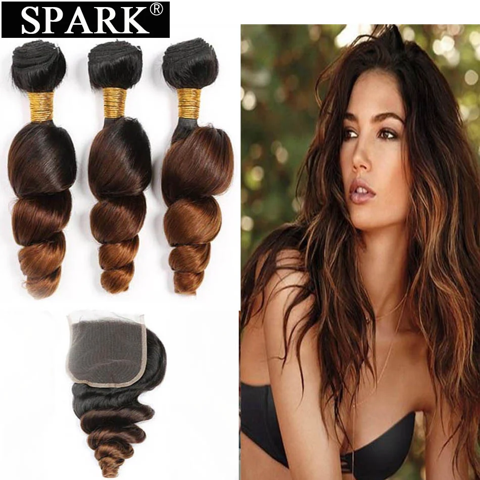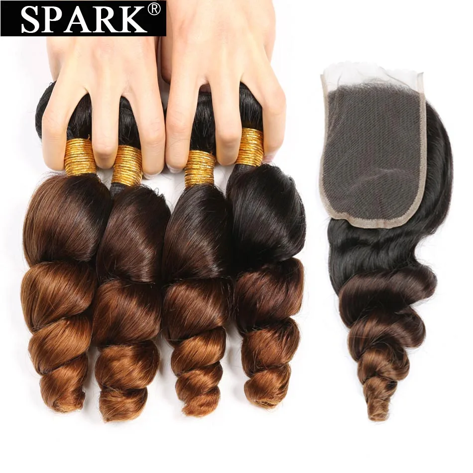 Перуанские свободные волнистые пучки омбре с застежкой 1B430 искрой Remy наращивание волос человеческие пучки волос с средним коэффициентом закрытия