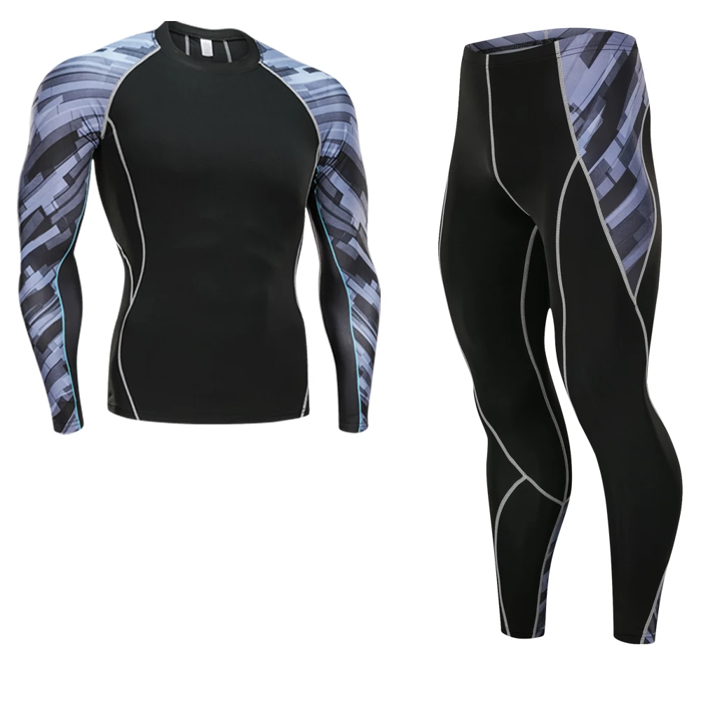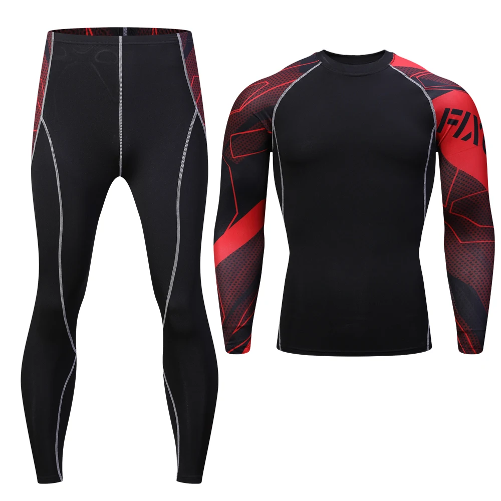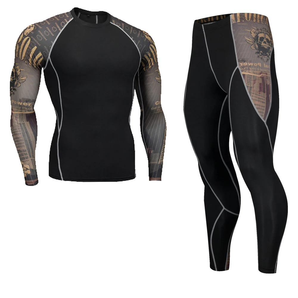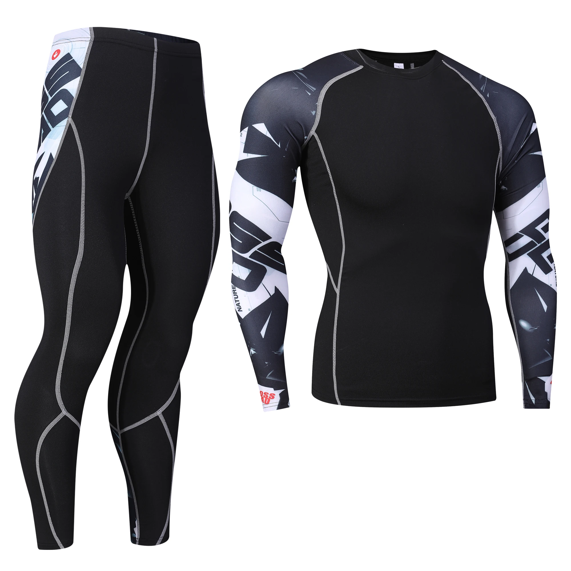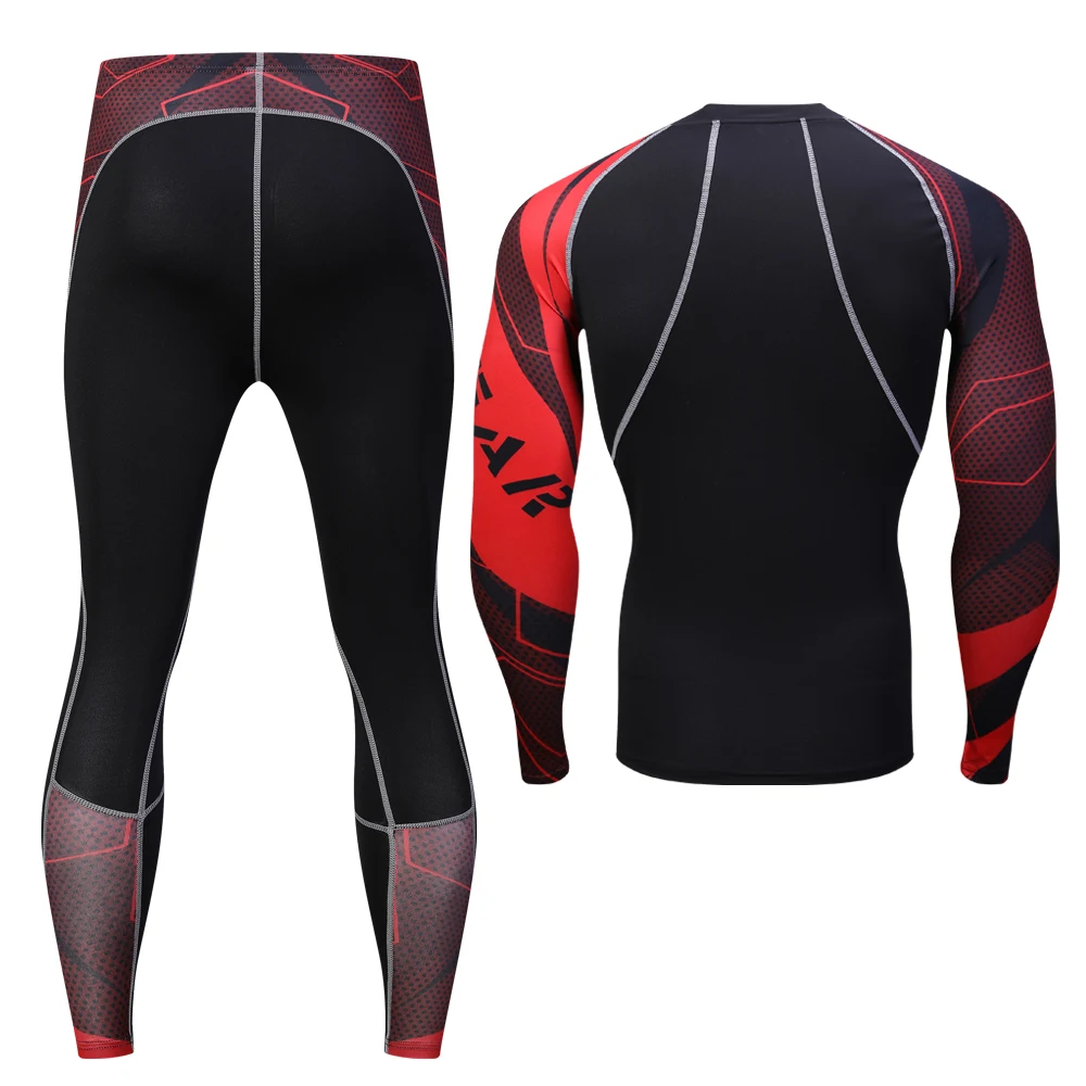 Брендовая мужская футболка с длинным рукавом Рашгард для ММА комплект термобелья компрессионная для кроссфита рубашки фитнес Леггинсы базовый слой 4XL