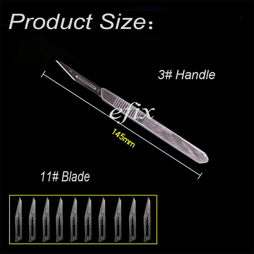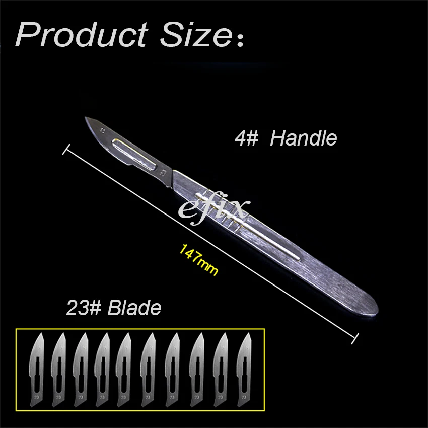Набор Хирургических скальпелей из углеродистой стали, 10 шт., 23 #1, + 1 ручка 4 #, скальпель Режущий инструмент для домашнего творчества, нож для ремонта печатных плат