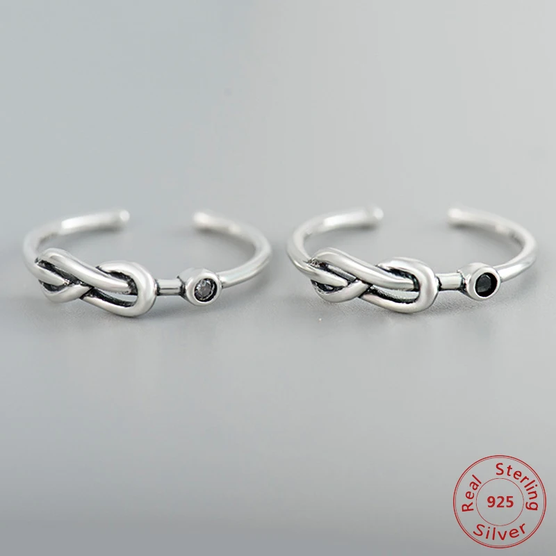 Винтажное кольцо с узлом, качественные аксессуары из кубического циркония, оригинальные кольца на палец из стерлингового серебра 925 пробы для женщин, регулируемые размеры 5-7