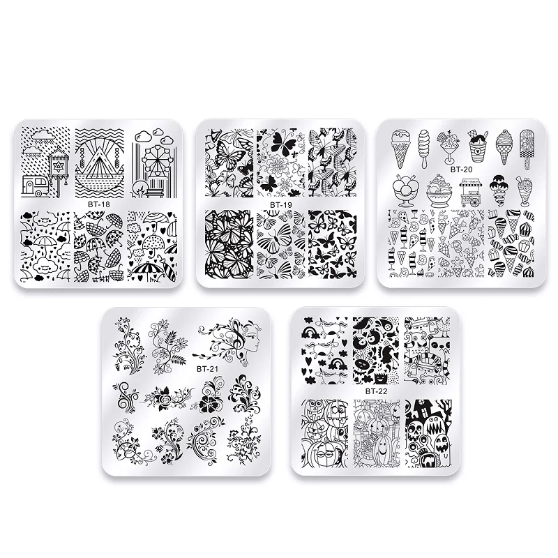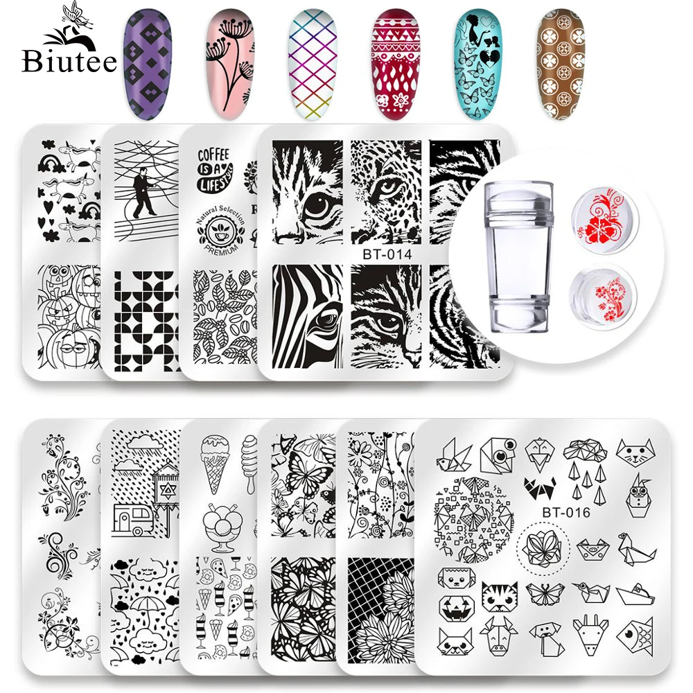 Biutee 10 шт. трафареты для ногтей пластины для стемпинга 6*6 см с рисунками живатных и цветов + стемпинг штамп для ногтей+скребок