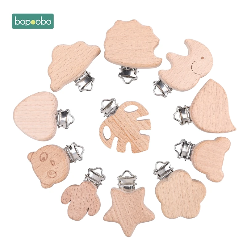 Bopoobo 4 шт. натуральная деревянная Соска с животным металлическим зажимом аксессуары для малышей держатель для еды с сердечком деревянный Прорезыватель для зубов