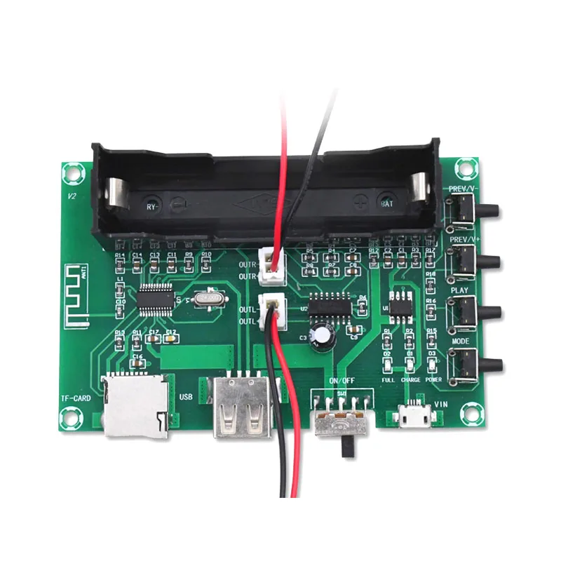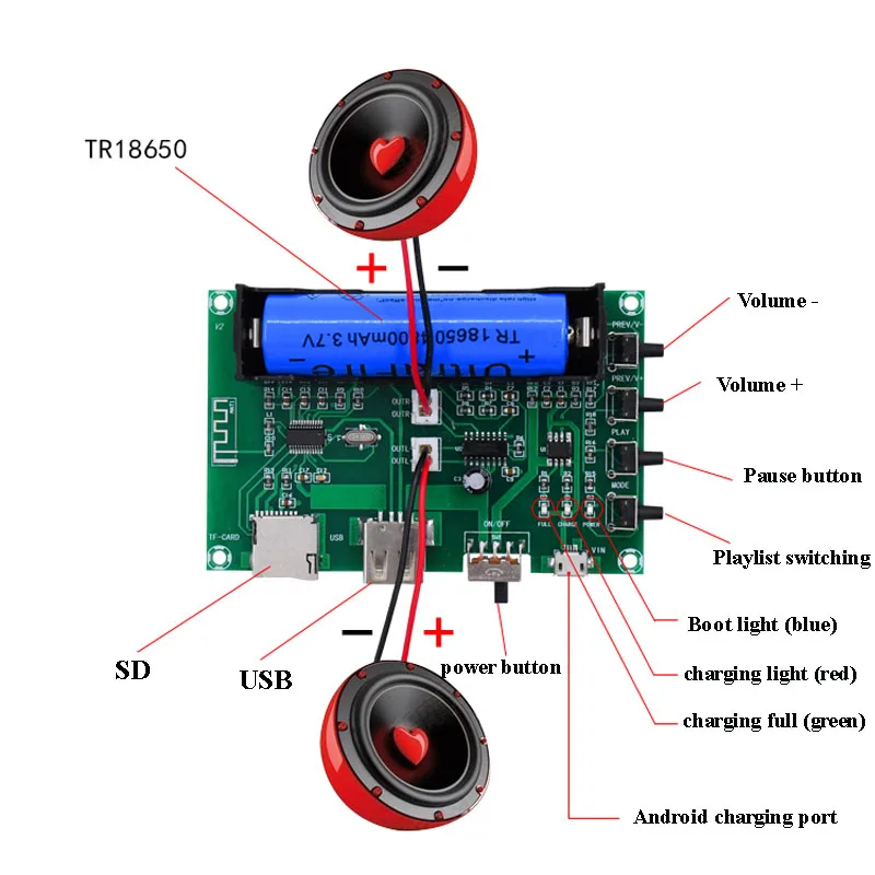 2. Два провода подключены к динамику,Красный-положительный, черный-отрицательный