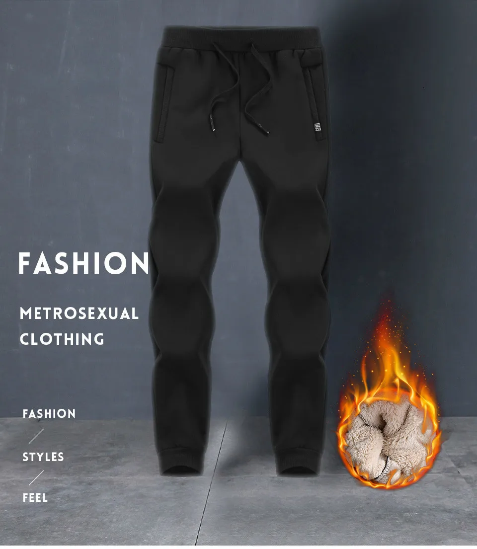 Brand Men's Wool PantsMen Thick Fleece joggers Fitness Pant Jogging Hip Hop Pants