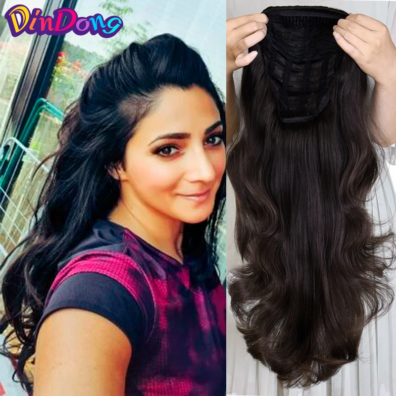 DinDong 24 дюйма волнистые 34 Дамы Половина парик на заколках удлин...