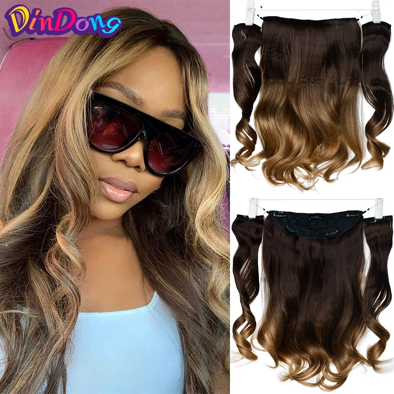 Синтетические волнистые накладные волосы DinDong, накладные волосы из рыбьей лески на заколке, 34, полупарик, 3 вида стилей в наличии, термостойкие волосы премиум-класса