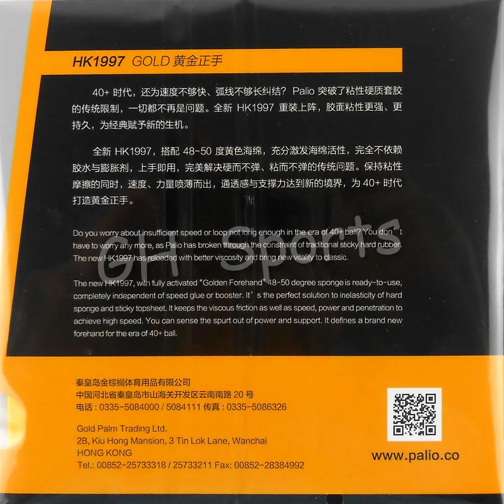Palio HK1997 GOLD Sticky and HK1997 Biotech Pips in резина для настольного тенниса