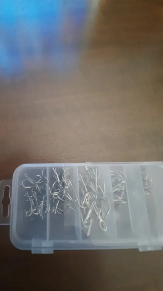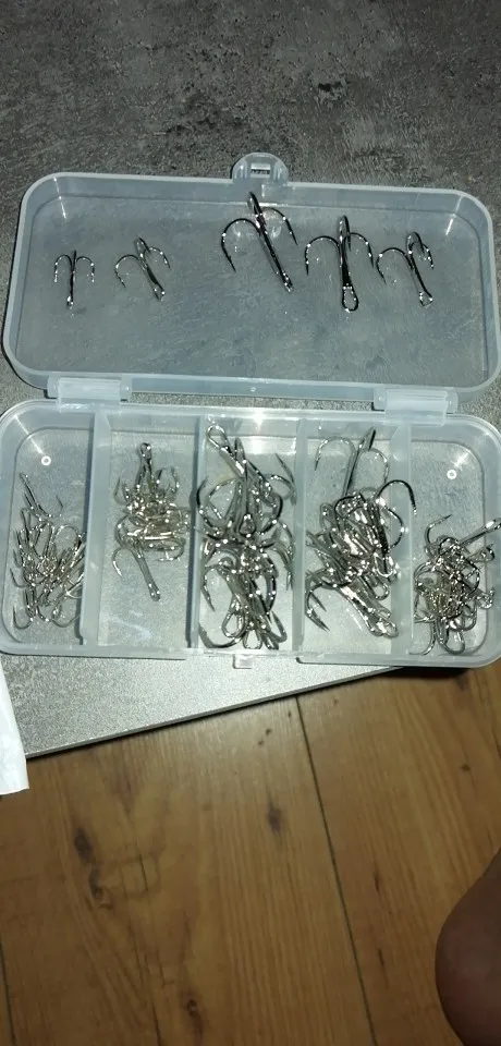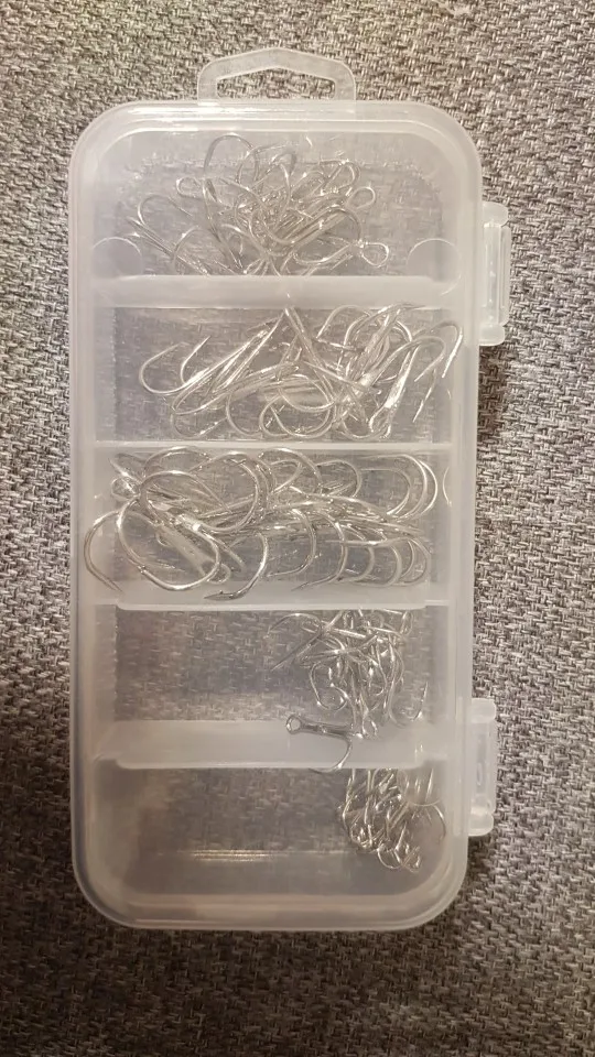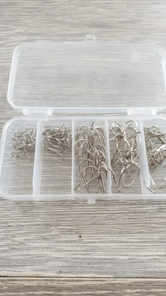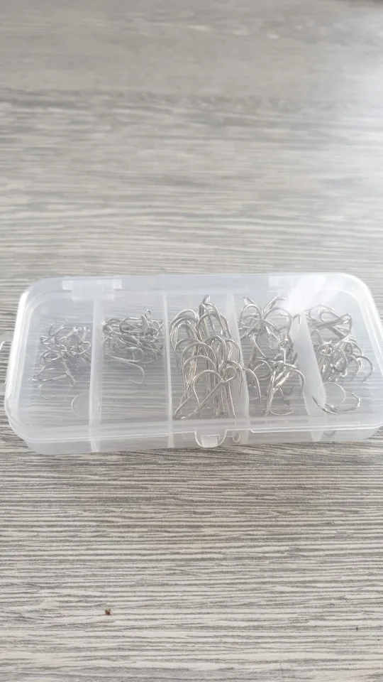 Тройной рыболовный крючок, 50 шт.лот, в коробке для хранения, заточенный Тройной Крючок, Размер 246810, зазубренный рыболовный крючок серебристогочерного цвета X235