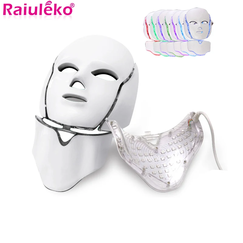 Светодиодный 7 цветов светильник Фотон лицевая маска для ухода за кожей омоложение Приспособления для красоты анти акне уход за кожей лица маска шеи отбеливание терапии