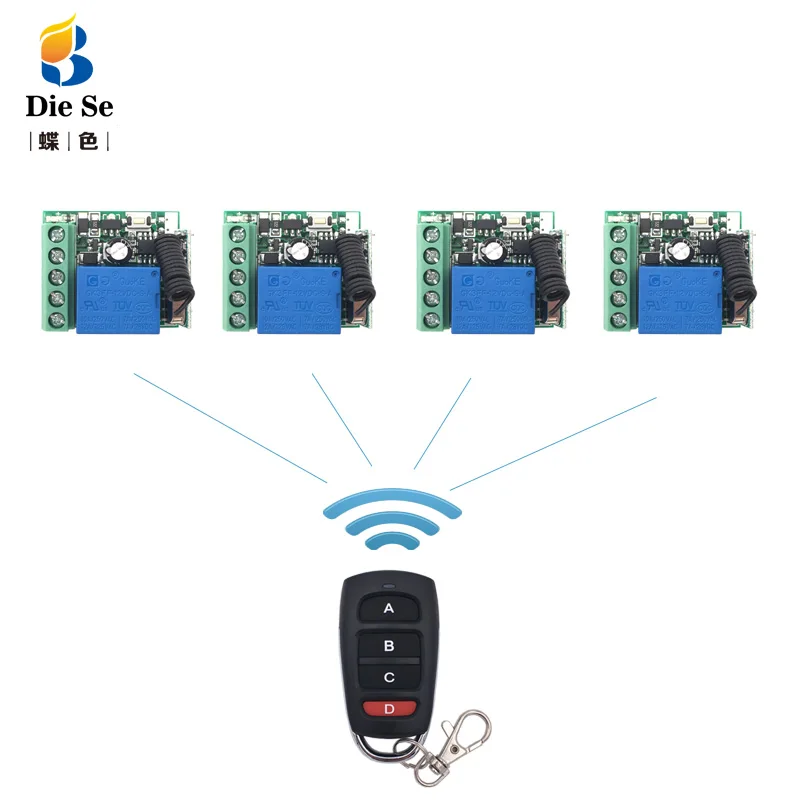 Универсальный беспроводной пульт дистанционного управления 433 МГц для ворот гаража, 12 В постоянного тока, 1 канал, модуль релейного приемника, 4-кнопочный пульт дистанционного управления, переключатель RFОбласть применения продукта Изделия можно использовать в освещении, гаражных воротах, дверях-жалюзи, занавесках с дистанционным управлением, двигателях постоянного тока, реверсивных двигателях. И многое другое.