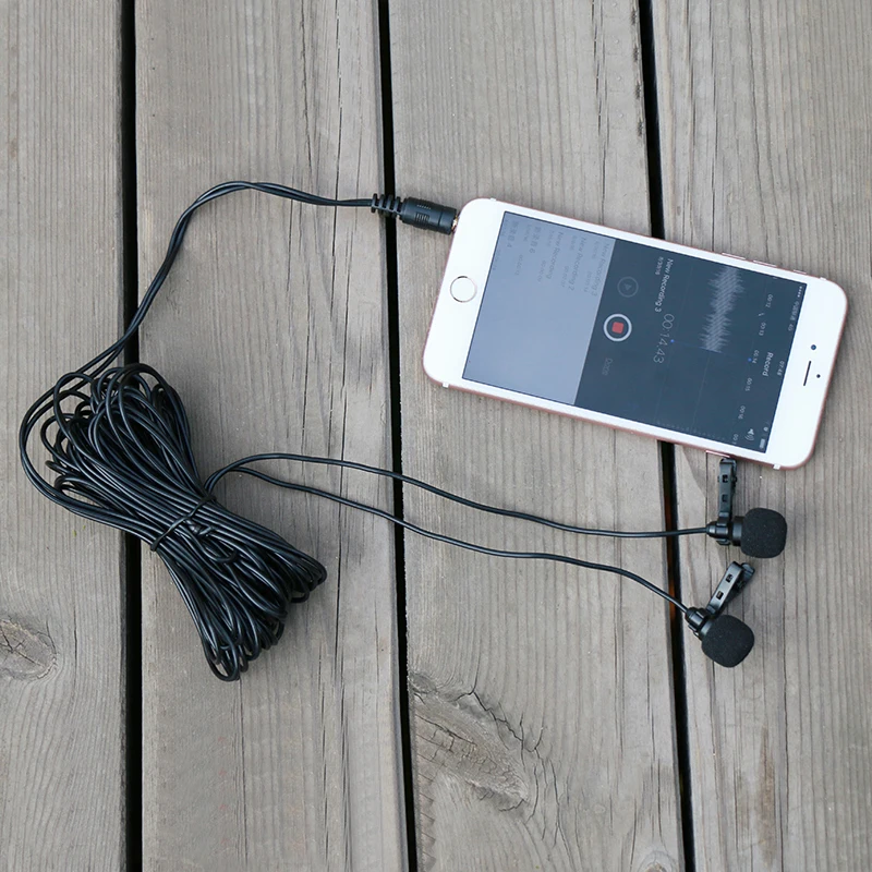 Ulanzi аримический петличный микрофон с двумя головками, 6 м, с зажимом, для лекций или интервью, для смартфона, мобильный телефон и планшеты