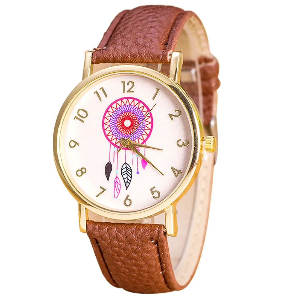 Часы женские кварцевые в стиле Ловец снов с ремешком из искусственной кожи