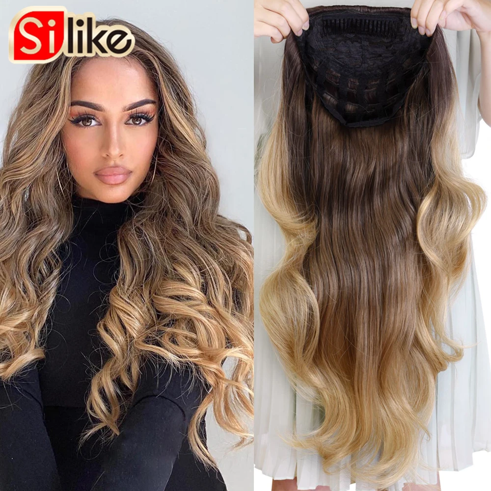 Silike синтетические 34 полупарики 24 дюйма длинный пепельный светлый волнистый парик с зажимом для наращивания волос 16 цветов 210 г для черных и белых женщин