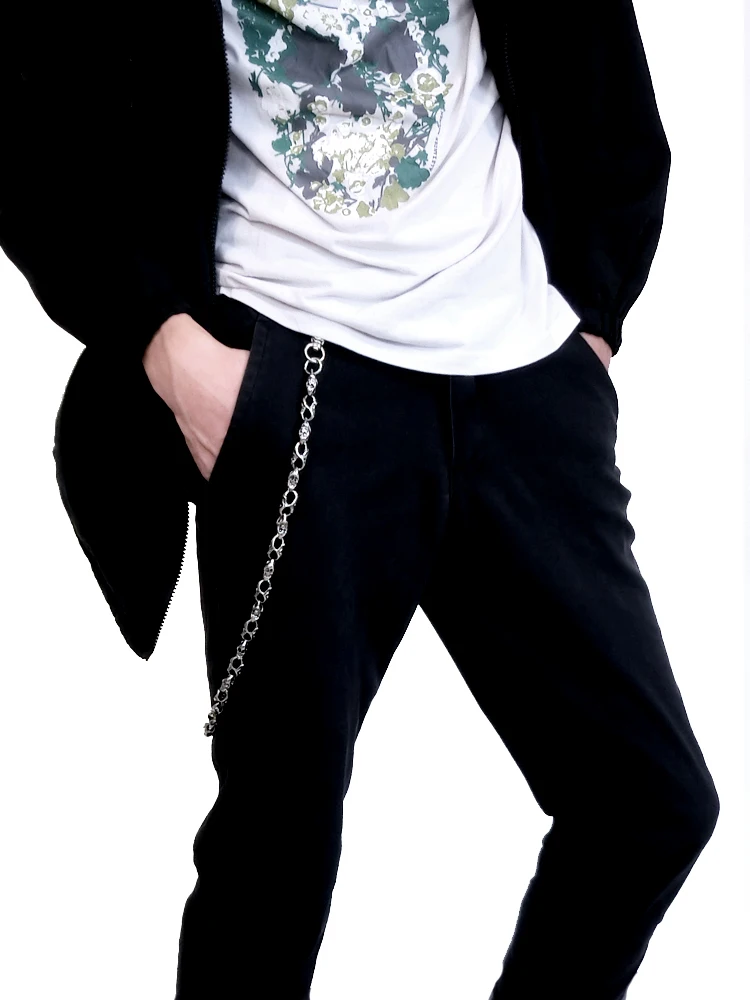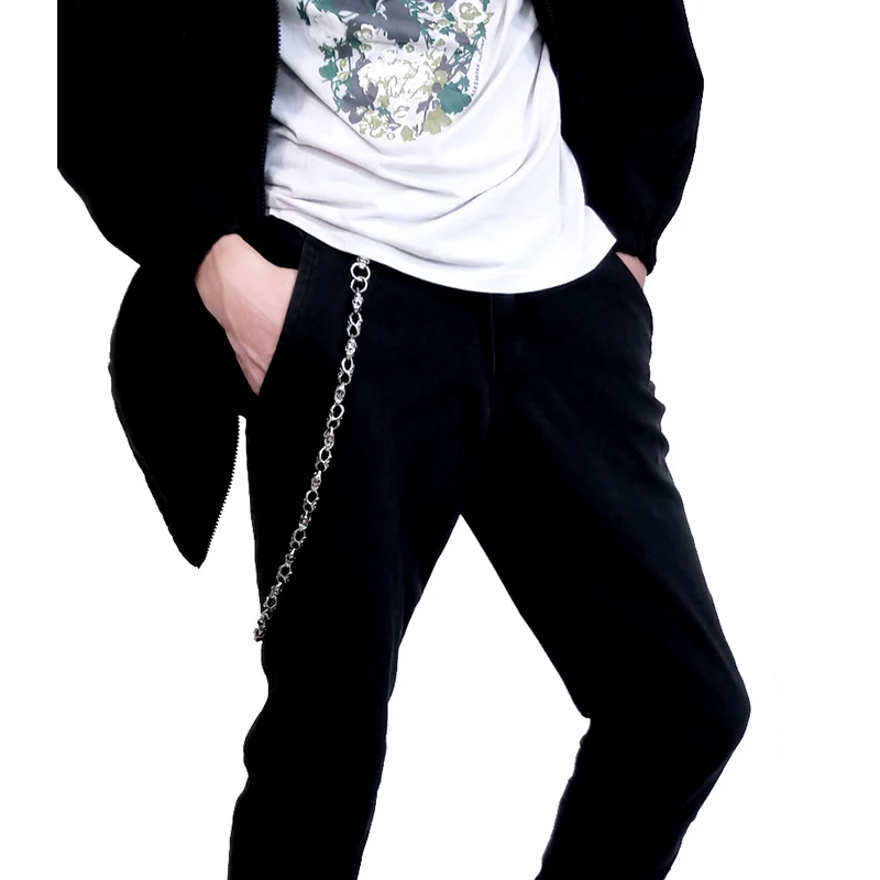 Брелок для ключей с черепом, кошельком под джинсы, металлический брелок черного цвета в стиле рок, панк, хип-поп, на ремень, для брюк, модные мужские аксессуары, бижутерия DR45