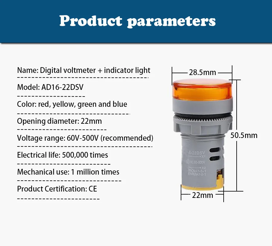 22 мм светодиодный цифровой дисплей Манометр вольтметр Индикатор сигнальная лампа вольтметр с подсветкой тестер комбинированный диапазон измерения 1-500 В переменного тока