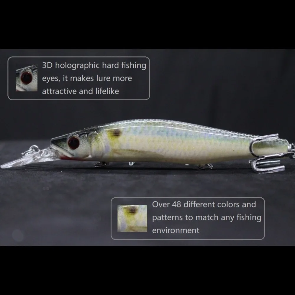 WLure 9 г 8 см 0,5 м глубина Реалистичная картина 2 черного никеля ...