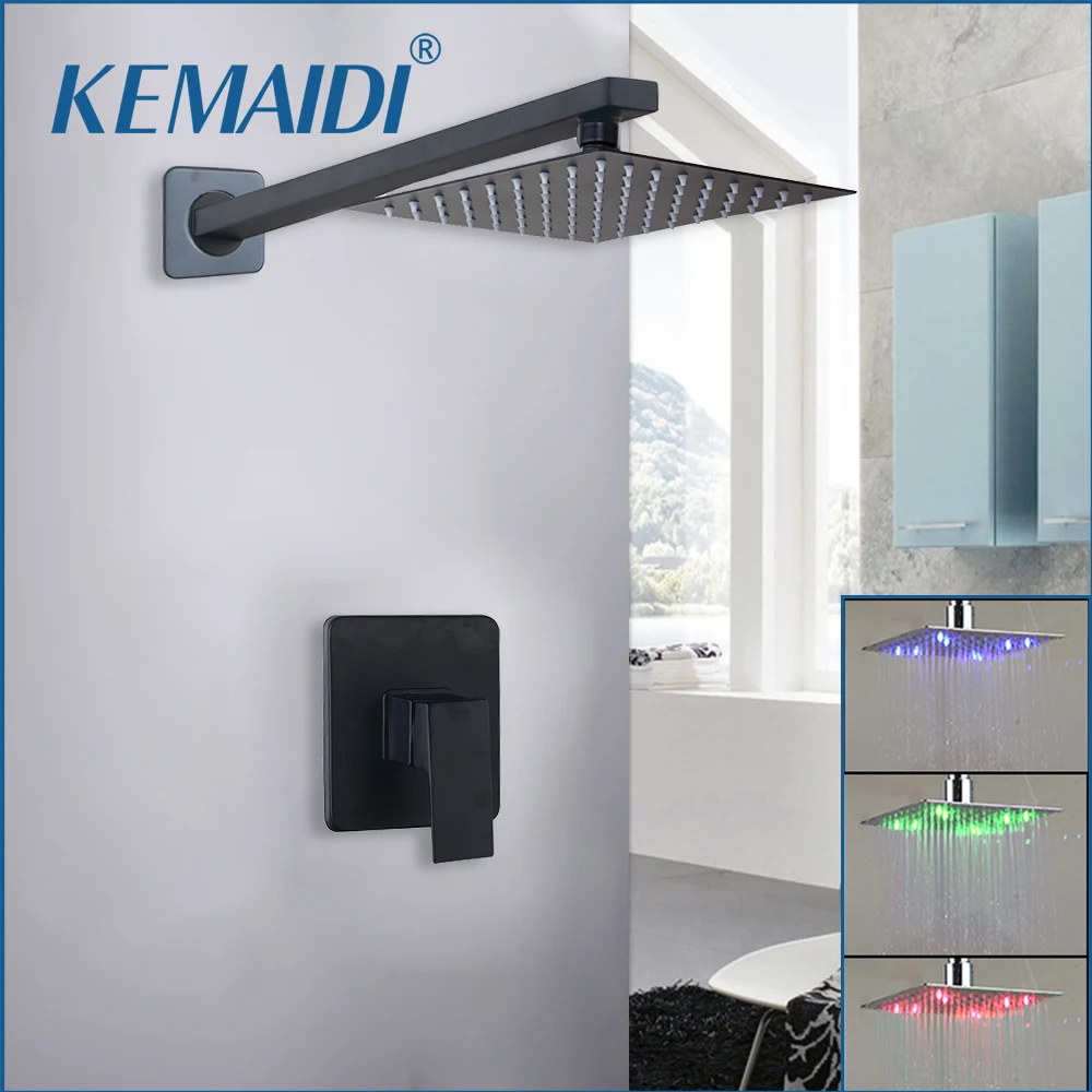 Набор черных матовых насадок для душа KEMAIDI, настенное крепление, из твердой латуни, ручной душ с дождевой насадкой, 8 10 12 16 дюймов