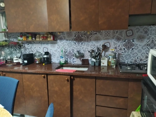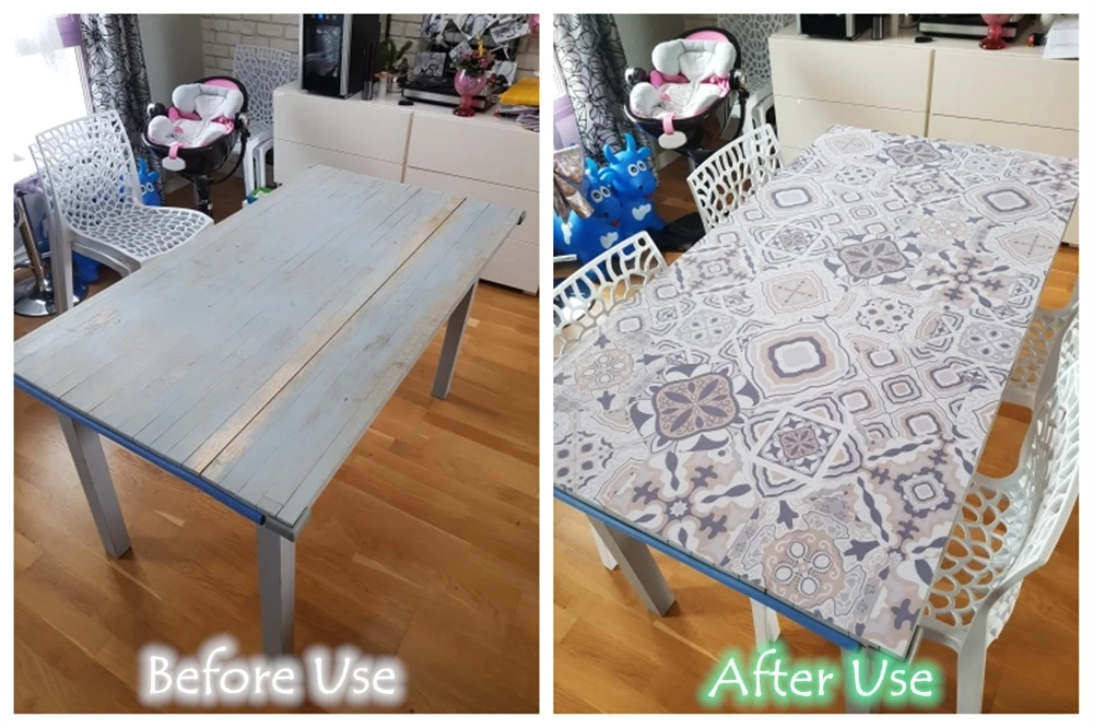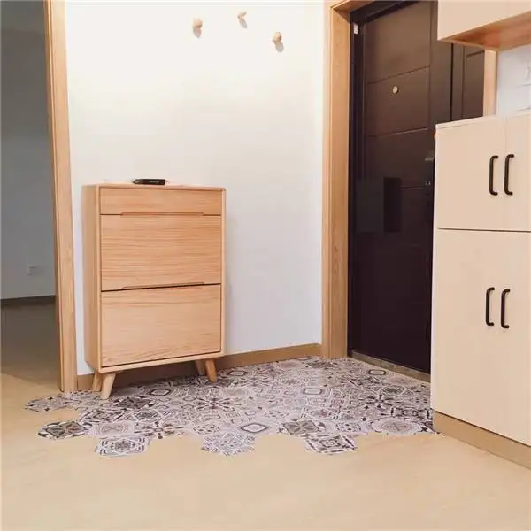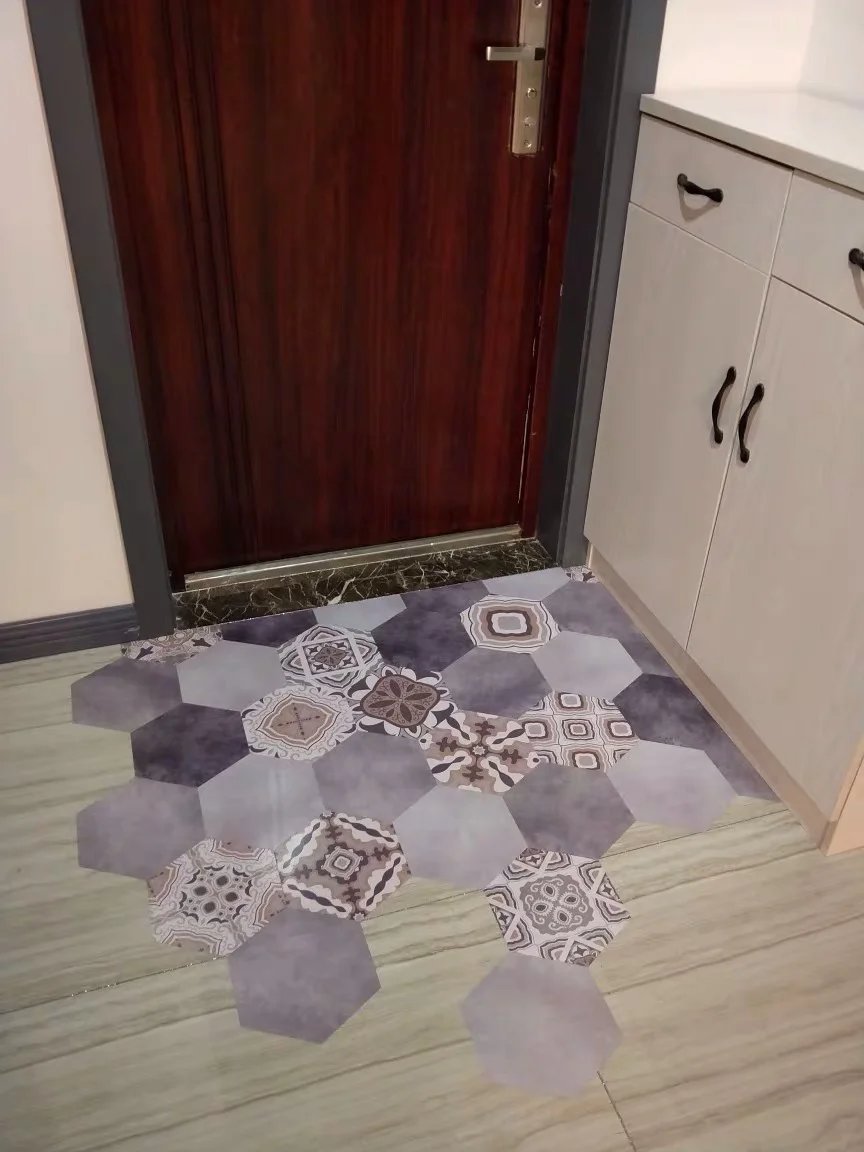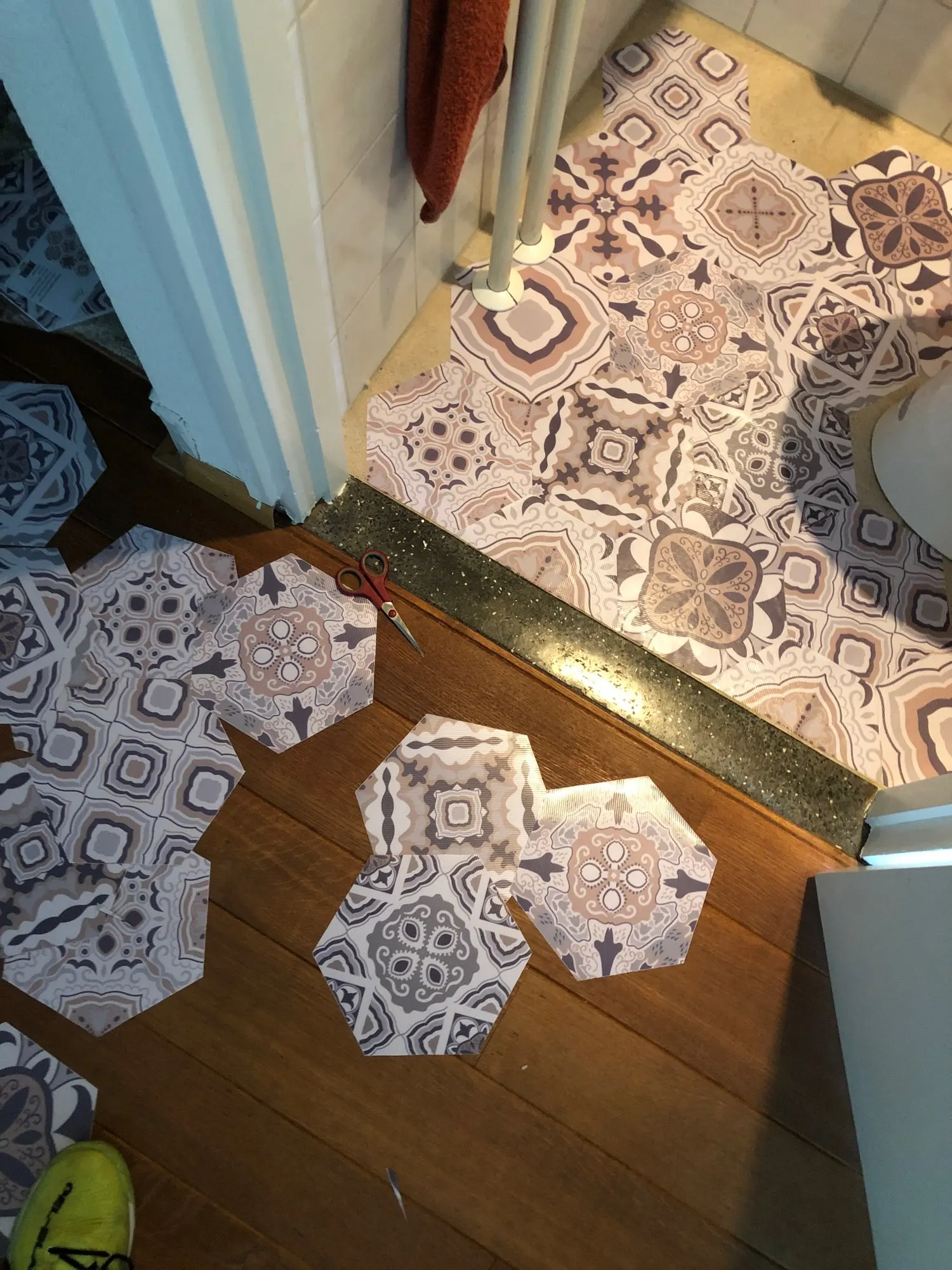 Я наложил их прямо над плиткой, и они красиво опустились. Легко выстраивать, нет проблем с цветом и легко резать. Я сделал это менее, чем за один день. На моем полу есть неровное пятно, и две плитки должны быть приклеены, так как клей не был достаточно сильным. Надеюсь, они будут выглядеть очень хорошо.