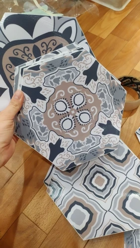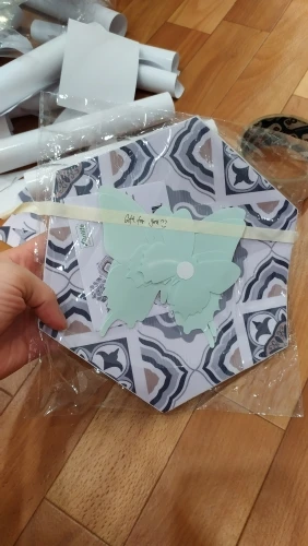 Красивый рисунок, но очень тонкие- сомневаюсь, что удачная покупкадля пола. Отправка быстрая, доставка месяц почти, тк объединили в общий пакет заказы из разных магазинов. в упаковке подарочек - светящиеся бабочки. Пока не клеили - возможно, все не так грустно будет. Если б видела, не купила б для ванной - даже со скидкой дороговато.