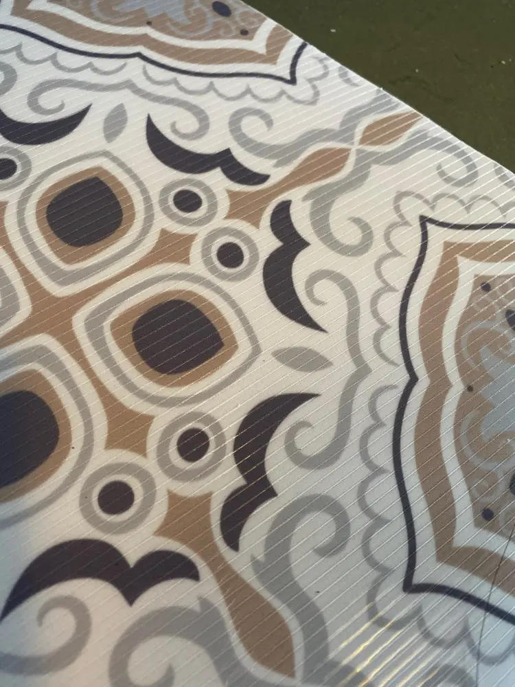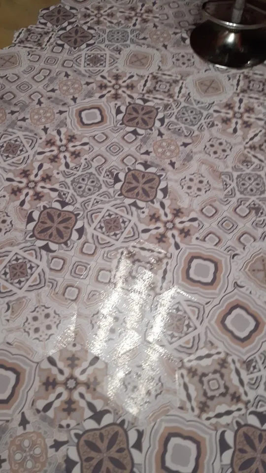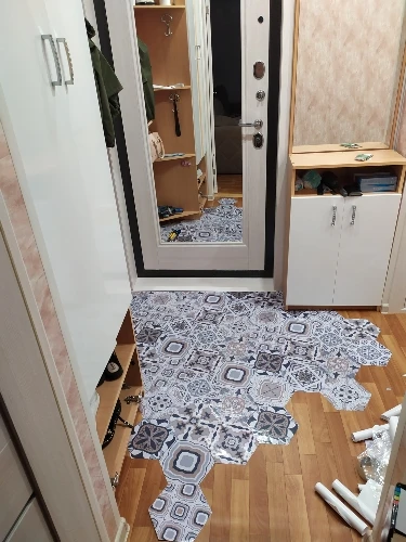 Получили. Цвет немного тусклый, чем ожидалось. Но это делает его довольно хорошим. Будьте осторожны, плитка не гладкая. Но немного растягивается. Но от моего маленького 1m64 он совсем не виден. (На второй картинке не приклеивается)
