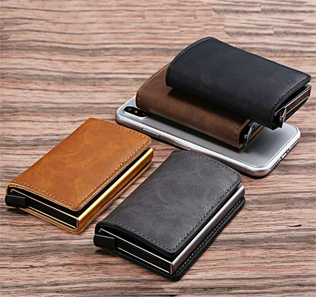 Мужской автоматический держатель для кредитных карт, кожаный кошеле...