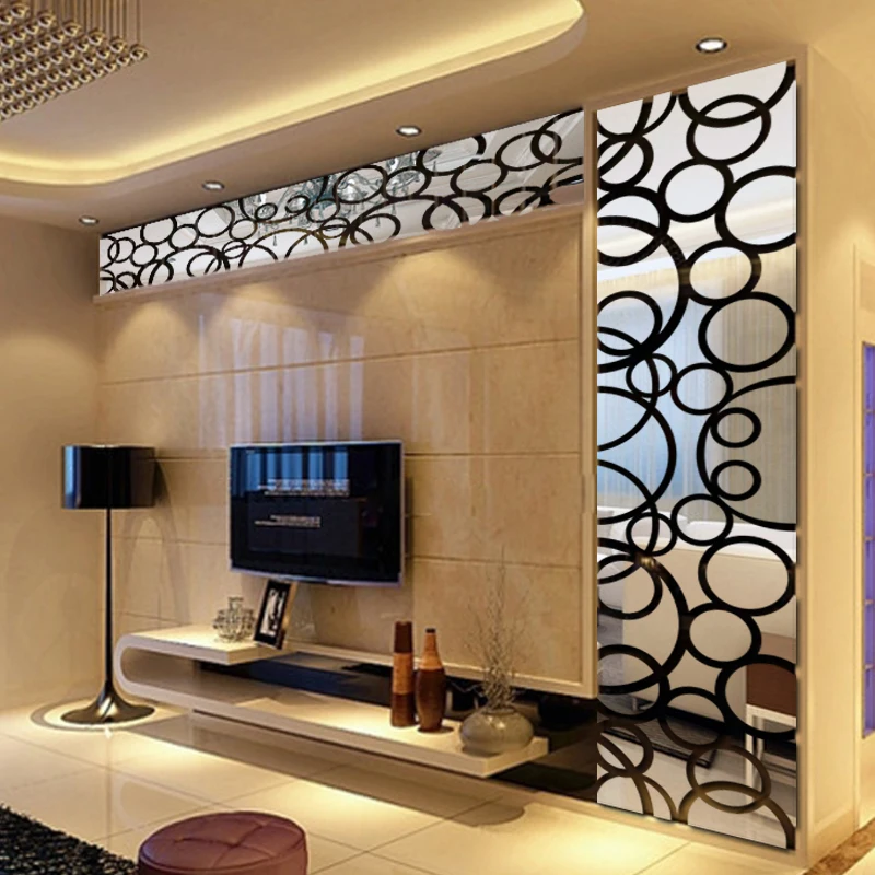3D зеркальные наклейки Наклейки на стены акриловые современные украшения дома Декор на стену зеркало настенные художественные наклейки DIY плакат Серебряныйзолотойчерный