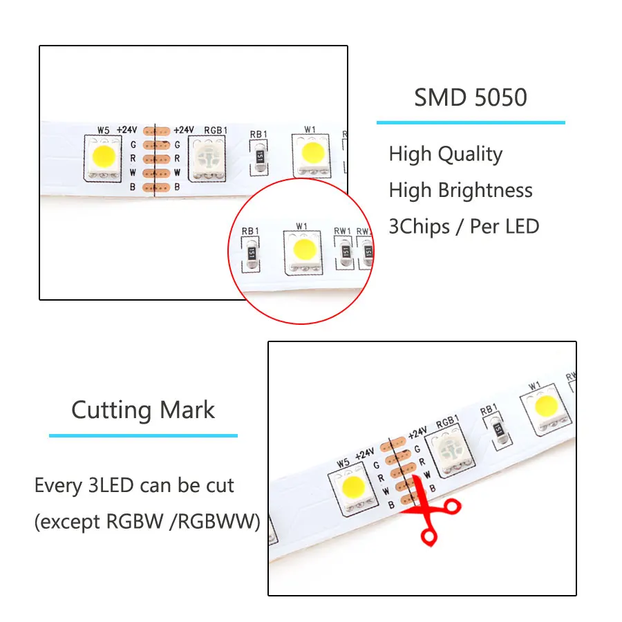 Особенности Превосходный правый 5050 SMD светодиодный Топ, высокая интенсивность и надежность. Пайка нескольких единиц, упакована в 5 метров. Длительный срок службы 50000 + часов Гибкая лента для изгиба С адгезивной лентой сзади, легко для установки. Низкое энергопотребление Полностью гладкий и ровный светильник, решение неровной светящейся проблемы Ультра-яркий, но работает при низкой температуре Особенности Входное напряжение: 24 В постоянного тока Цвет: белый (6000-6500k)/теплый белый (3000-3500k)/RGB Размер изделия: 5000*2,5*10 * мм. Может быть вырезан 6SMD светодиодный (DC 24V) Светодиод Moel: SMD 5050. Люмен: 14-16 лм/светодиодный Светодиодный Количество: 300 светодиодный за позволяет с легкостью крутить катушку. Каждый светодиодный имеет 3 светодиодный чипы внутри. Угол луча: 120 градусов. С адгезивной лентой сзади, легко для установки. Печатная плата: Quanlity двухсторонняя печатная плата Длительный срок службы: 50000 часов Степень защиты: IP65 водонепроницаемый Уровень безопасности: Низкое тепловыделение, твердое состояние, высокая ударная или вибрационная устойчивость, отсутствие УФ или ИК-излучения Посылка 1*5 м 300 светодиодный 5050 светодиодный фонарь (блок питания или контроллер не входят в комплект) Примечание: Пайка очень распространена на светодиодных лентах, не является проблемой качества. Светодиодная лента может быть паяна с помощью шт до 5 м длины, если вы не можете принять это, Пожалуйста, избегайте!