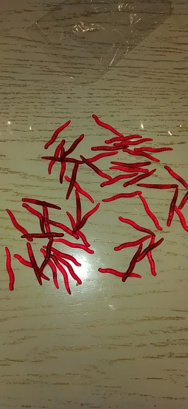 Со дня заказа, до получения в отделении почты России в Подмосковье прошло ровно 15 дней. Сами черви очень похожи на мотыля. Но все же жестковаты и толстоваты будут, чем оригинал. Может попробовать с десяток приварить... Осталось только льда дождаться))).