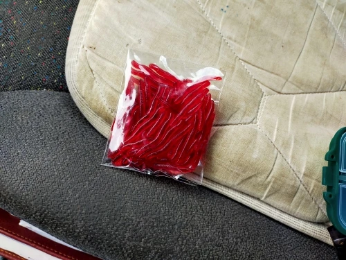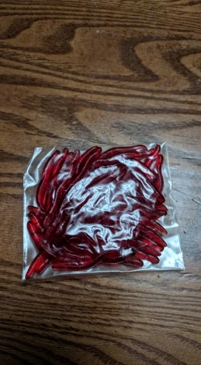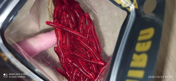 Прикольные червячки. В чëм-то жирном, типа масла, наверное, чтобы не слипались. Запах есть, но не сильный, чуть-чуть, и не химозой вонючей а чем то непонятным, немного ягоды какие-то напоминает. Не дубовые, но и не сопливые, примерно как белые дождевые черви. Ловить не пробовал, межсезонье сейчас, думаю на отводной пойдет летом