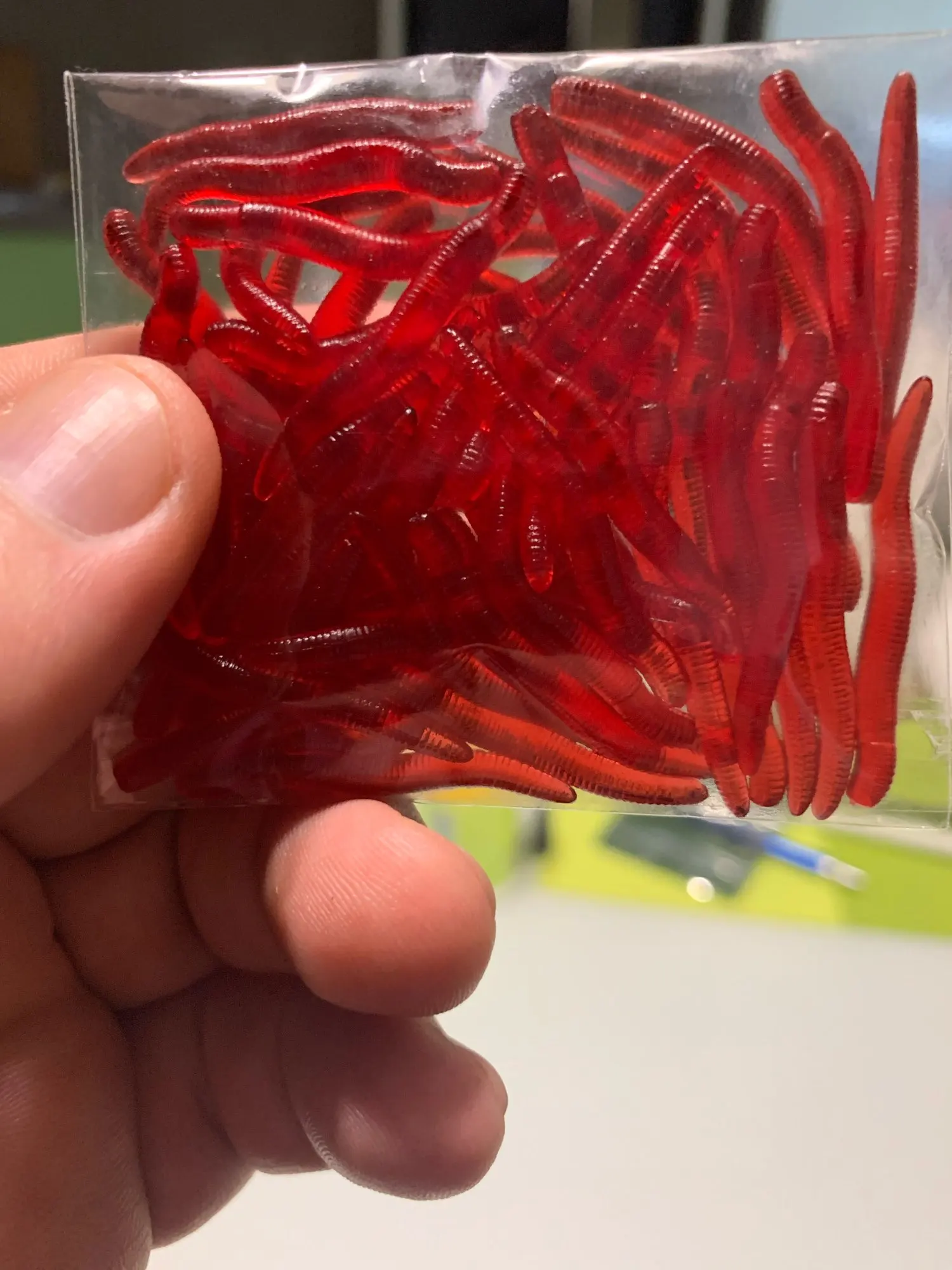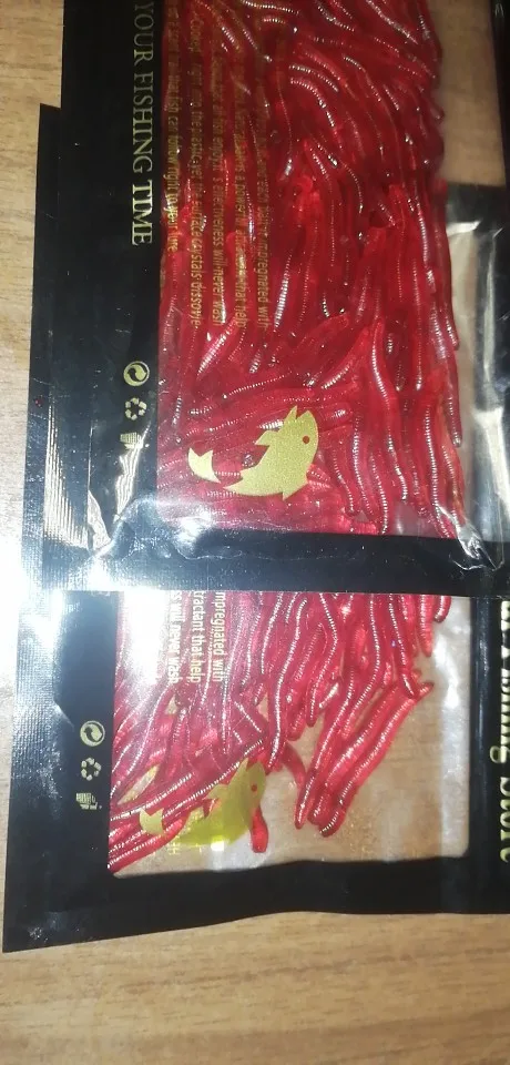 Характерные червячки))))), без запаха (про вкус не знаю)))), на ощупь слегка «маслянистые» и крайне подвижные. Впечатление правдоподобности сильной. Насколько приманка будет эффективной, не знаю, но очень надеюсь на это. А то что выглядит эффектно - это да!)) доставка очень быстрая, совмещённая. Никаких повреждений или иного ущерба. Продавцу спасибо за точность и оперативность отправки!